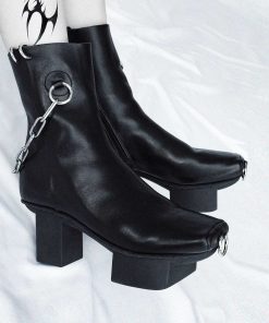 Trippen Men’s Shoes Hardcore M | Happy Black In Stock: 39 40 41 42 43 44 Add To Cart Fecal Matter In Collaboration With Trippen Created Ankle Boots That Are Decorated With Piercings Which Can Be Found On The Square Tip Of The Shoes As Well As On The Top. Around The Ankle