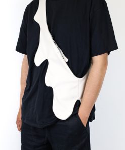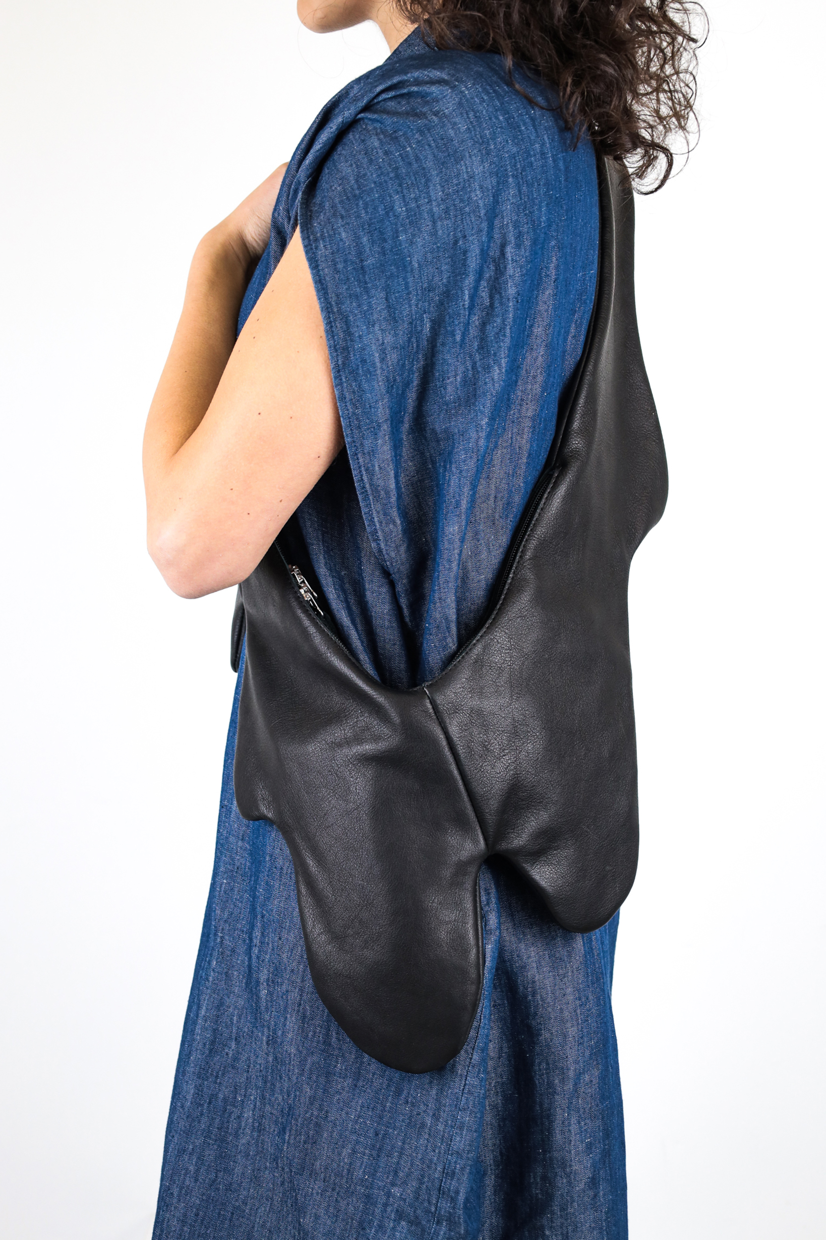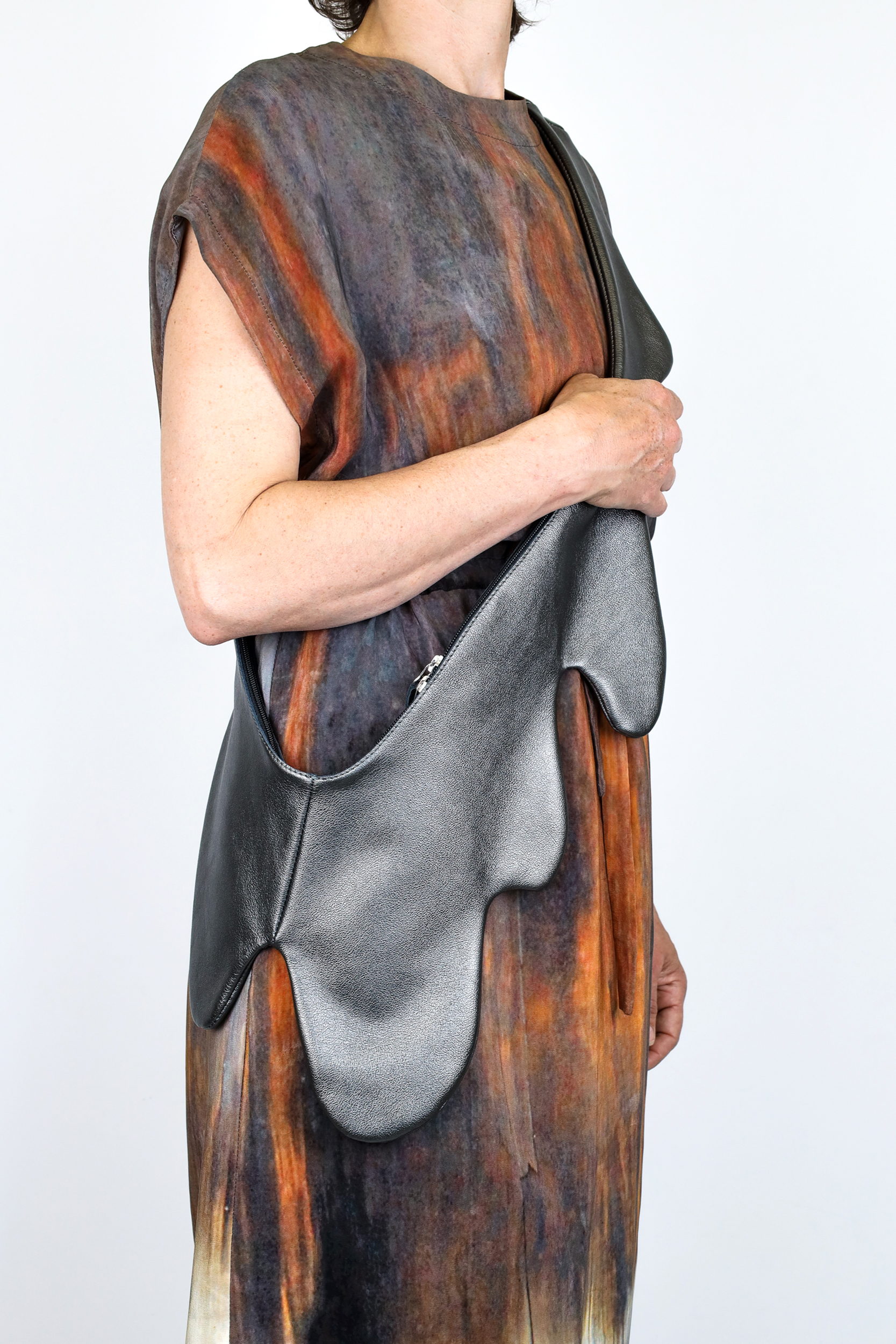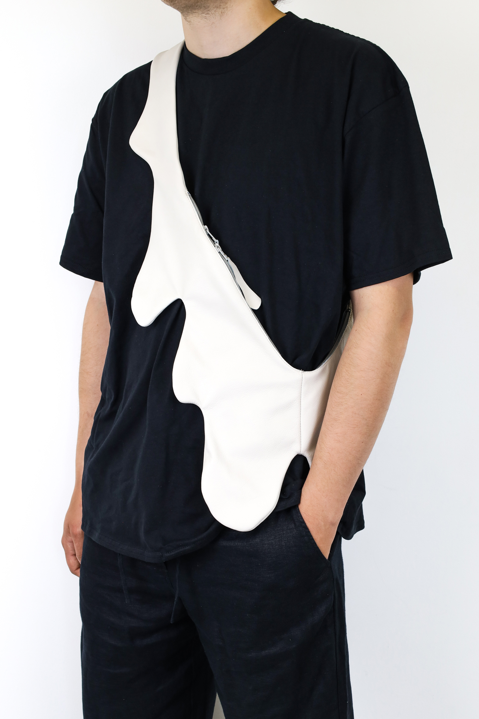 Soft, slim crossbody bag with cascading lines that double as multiple small pockets. It fits elegantly against the body and turns any top into a statement piece.