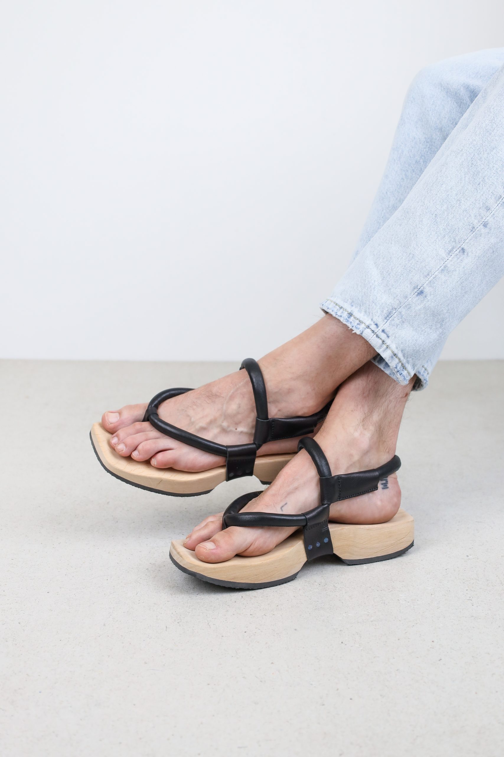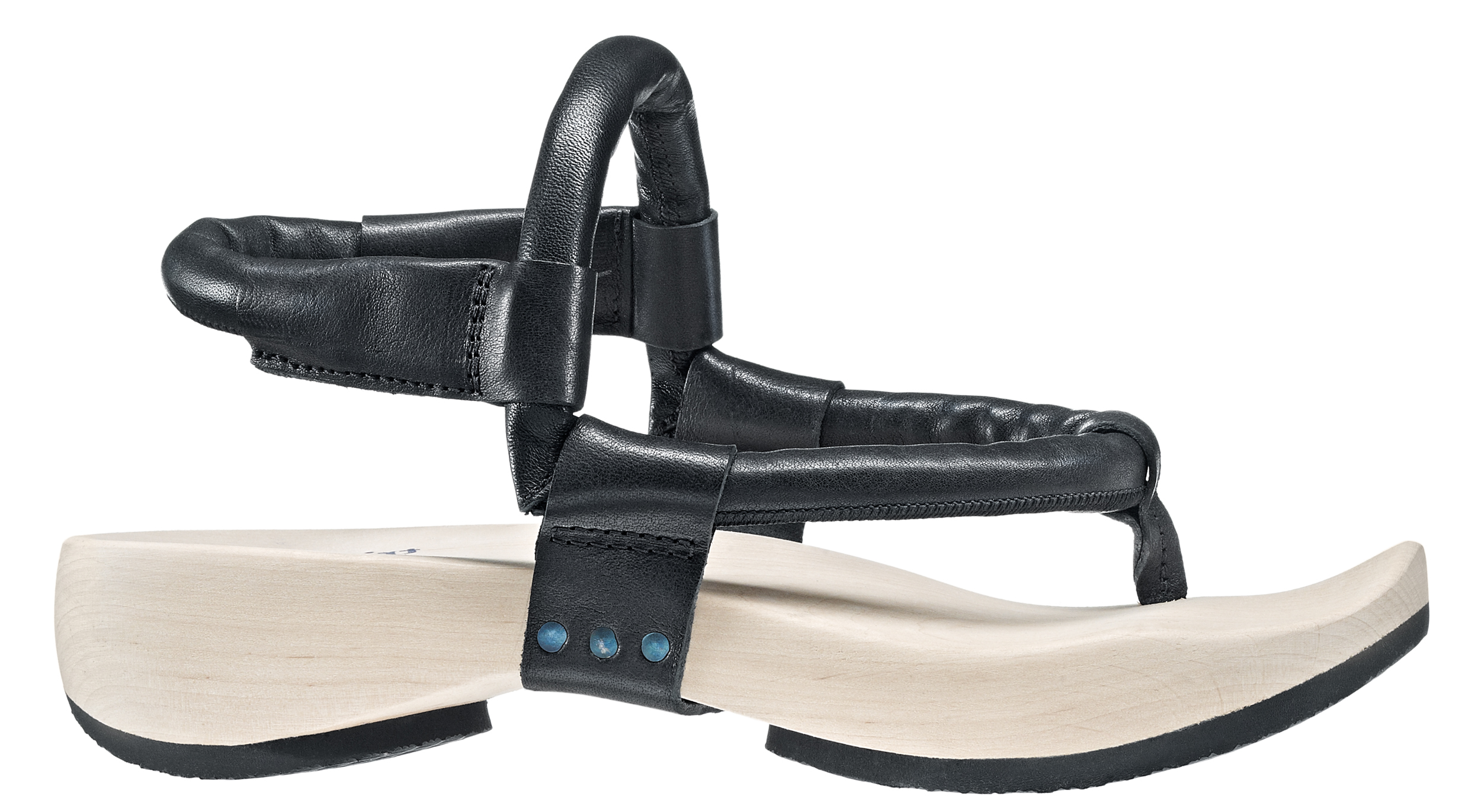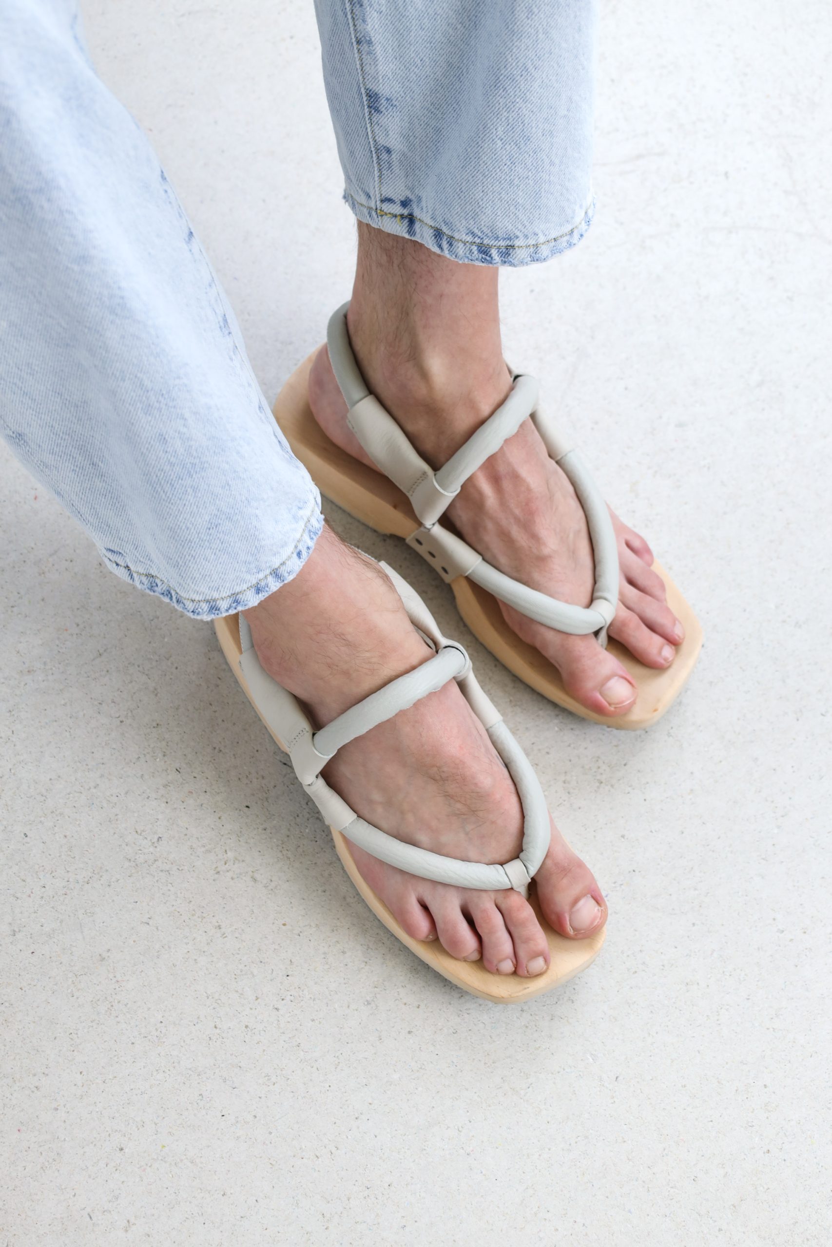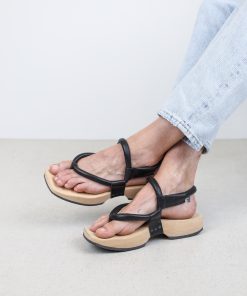 A sophisticated thong sandal with a rounded heel for a comfortable walking experience thanks to mechanical shock absorption.