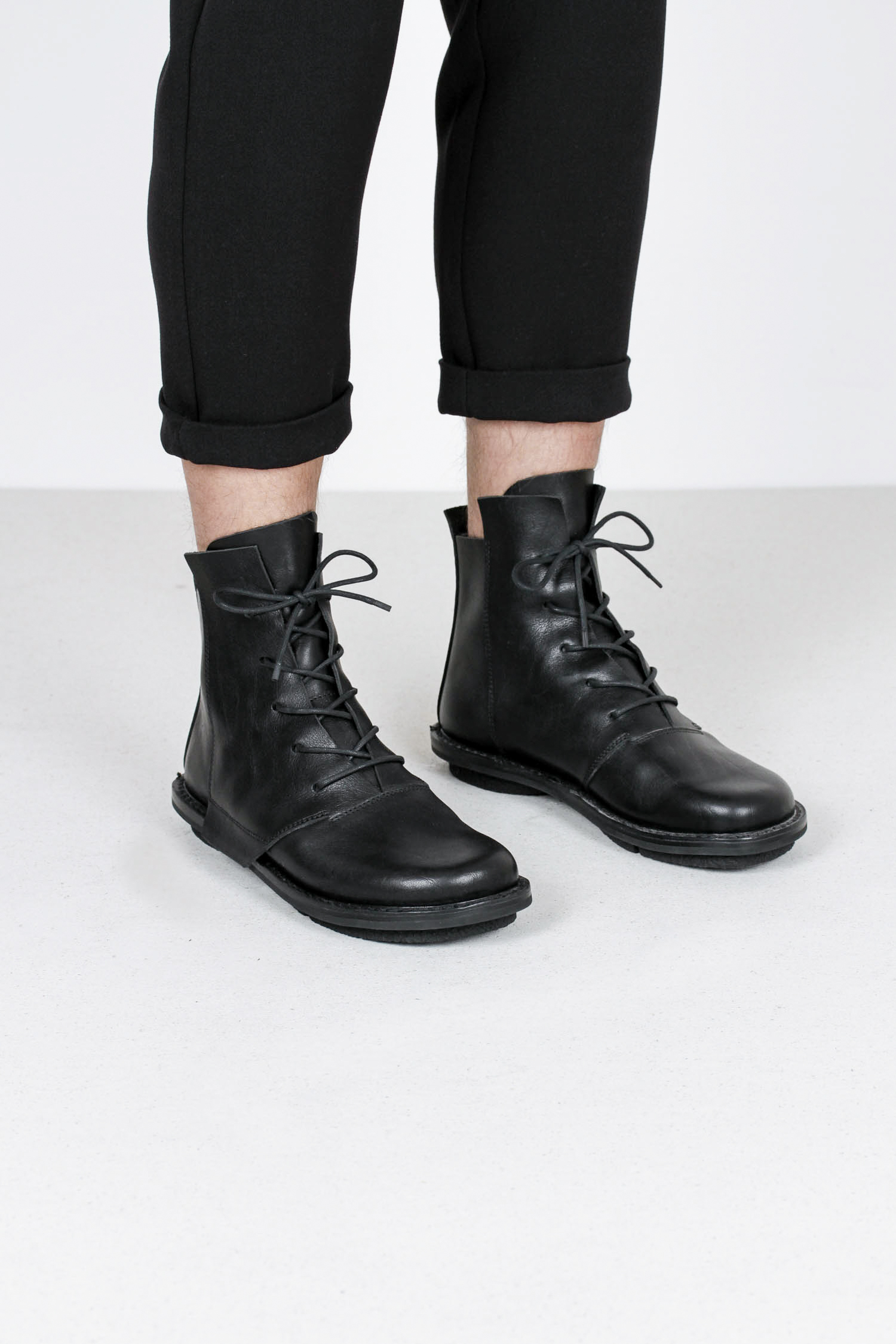 Trippen Men’s Shoes Lumber M | Vigor Black In Stock: 39 40 41 42 43 44 45 46 Ready In 10 Days: 47 Add To Cart Unisex Lace-up Ankle Boot With Graphic Lines. This Model Runs A Bit Bigger Than Normal. If You Are Between Two Sizes