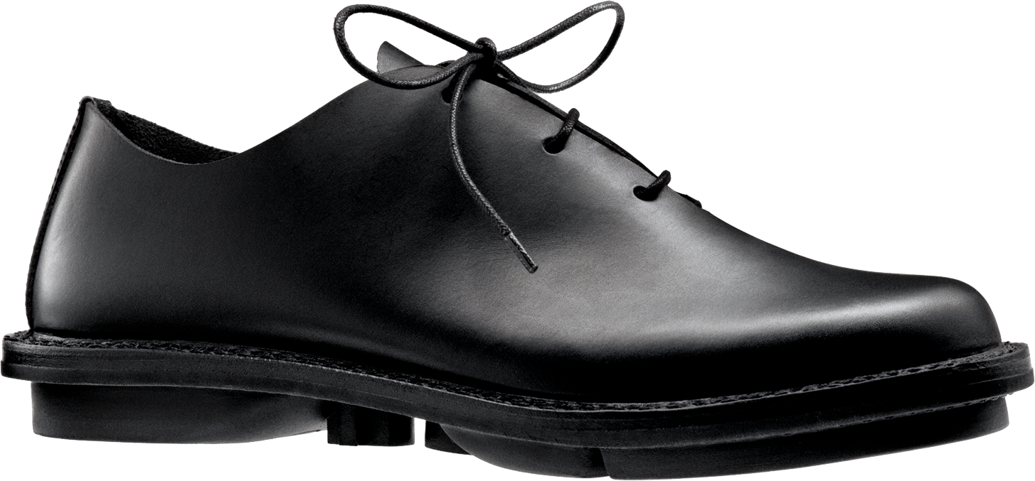 Simple men’s lace-up shoe on the closed sole in simple black or with stripes embossed leather.