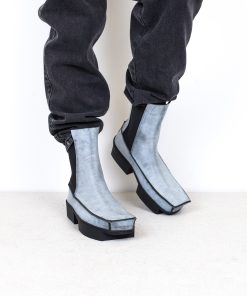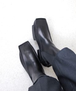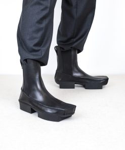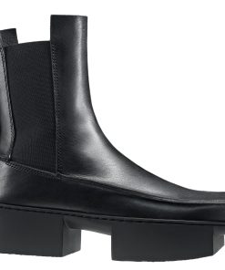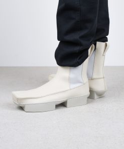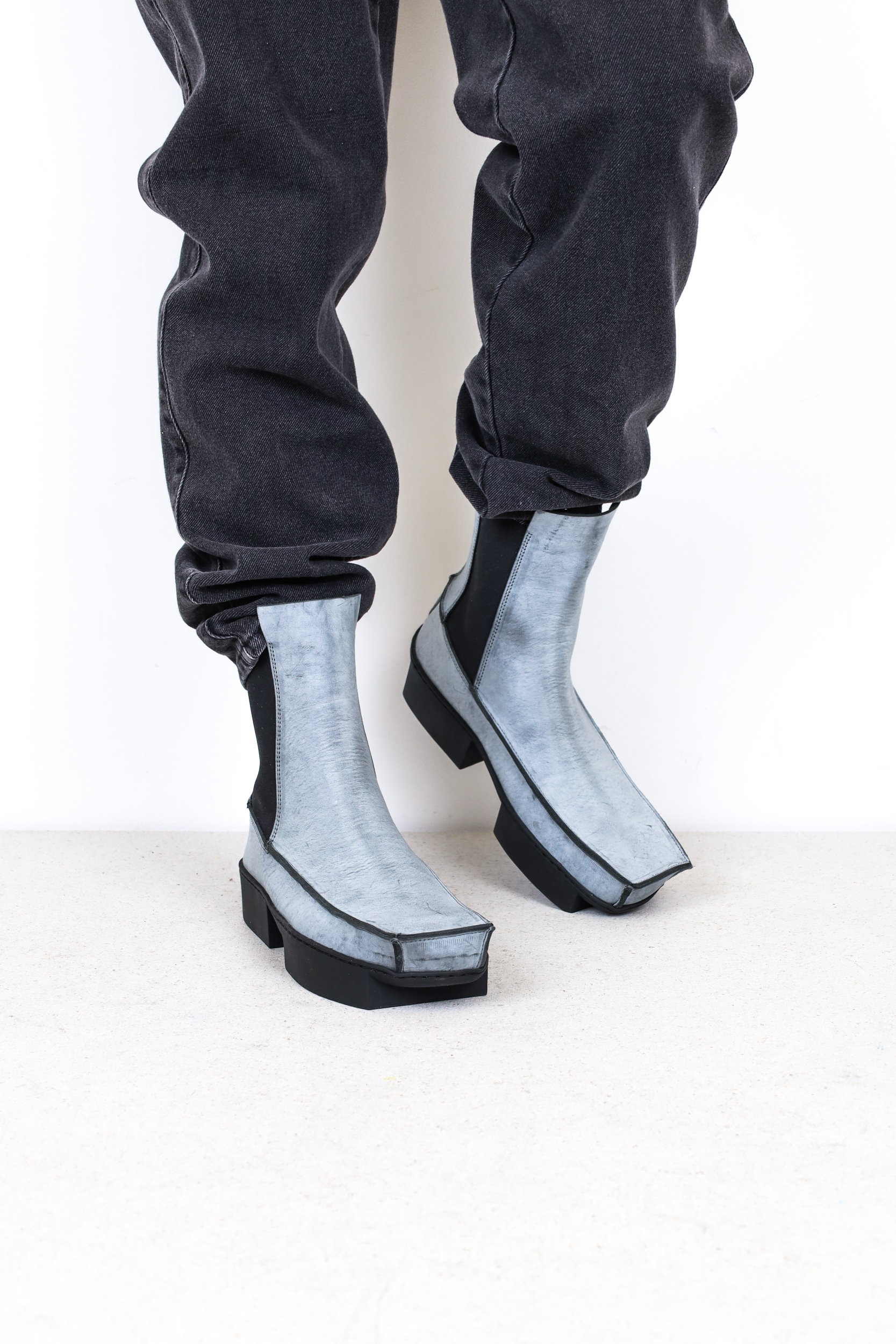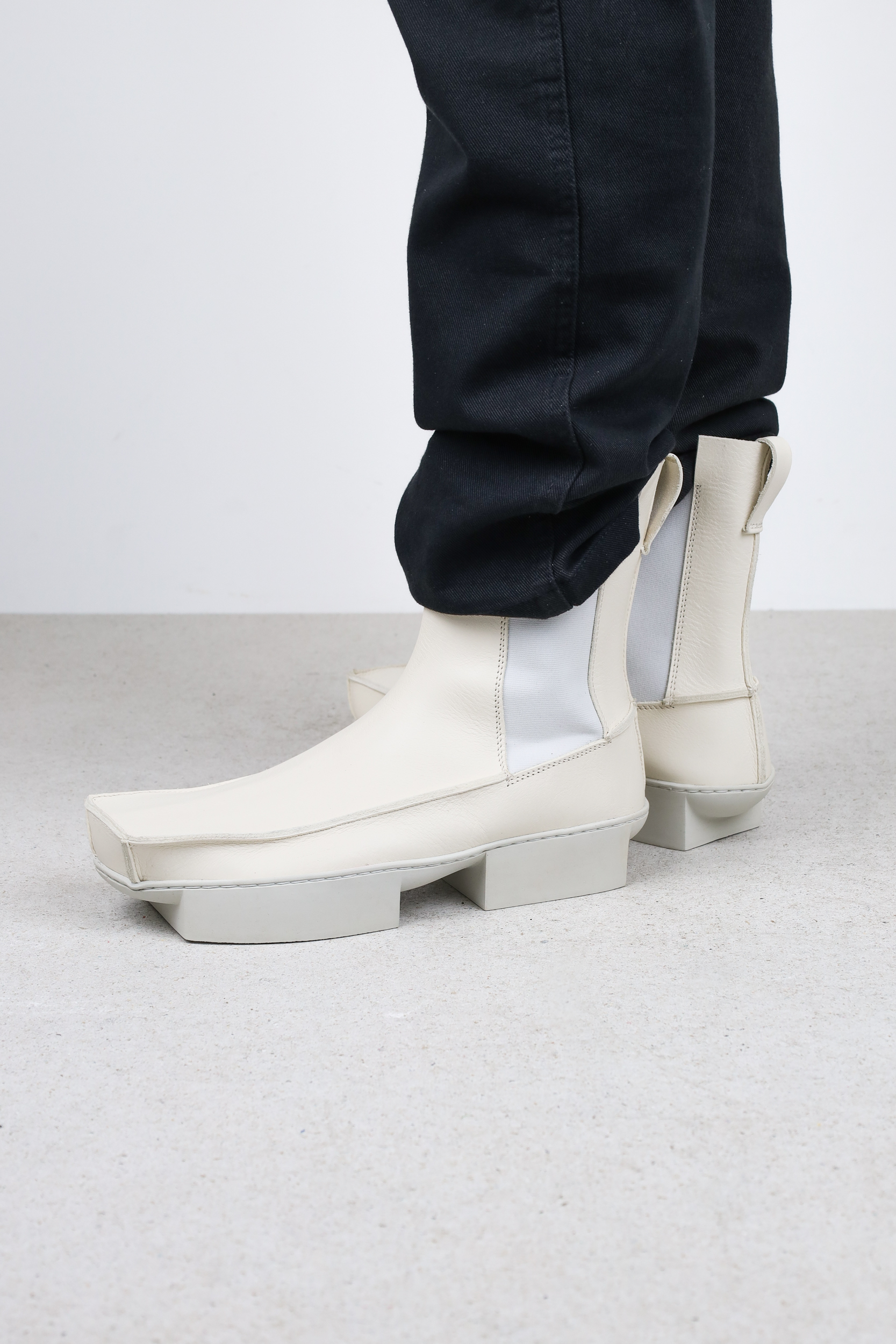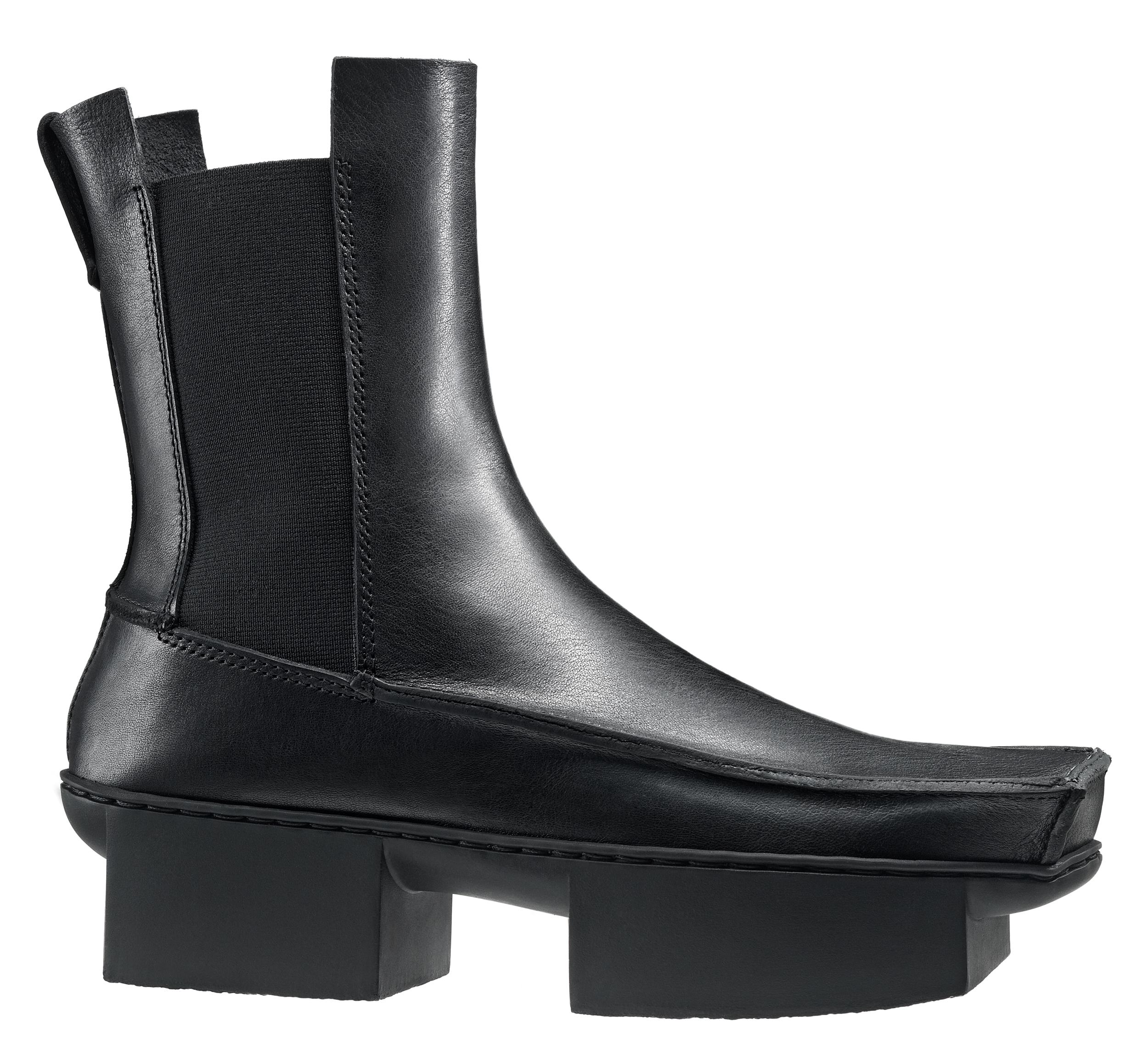 The pinch stitching, which runs at right angles over the toe and to the elasticated band and heel, gives the Chelsea a strict geometry.