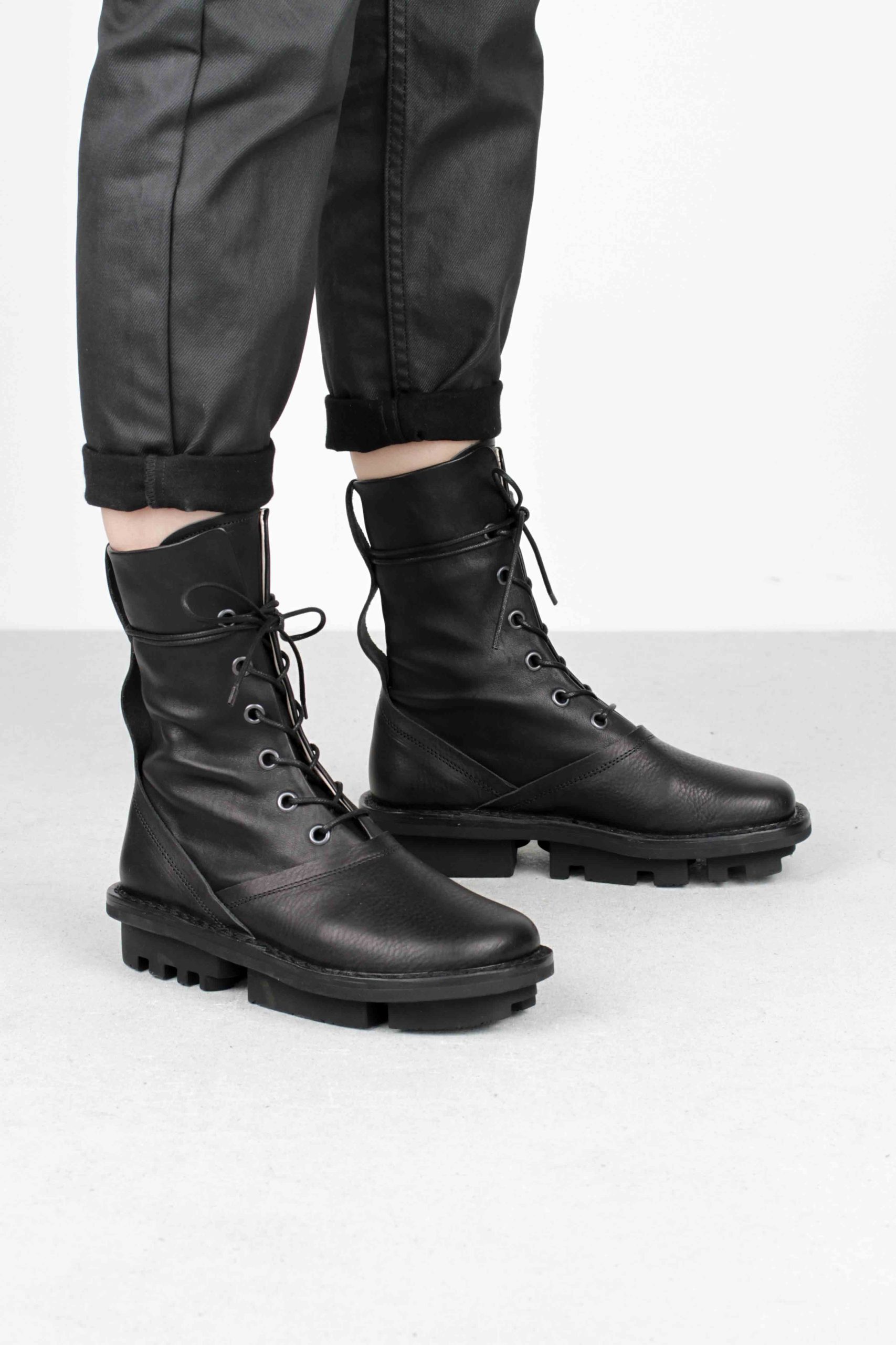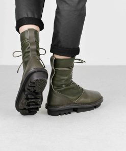 Average is a robust, leather-lined boot with eyelets designed for laces. The superimposed vamp and heel section are highlighted by a decorative seam. Extra-long laces can be casually threaded through the back flap and wound around the ankle.
