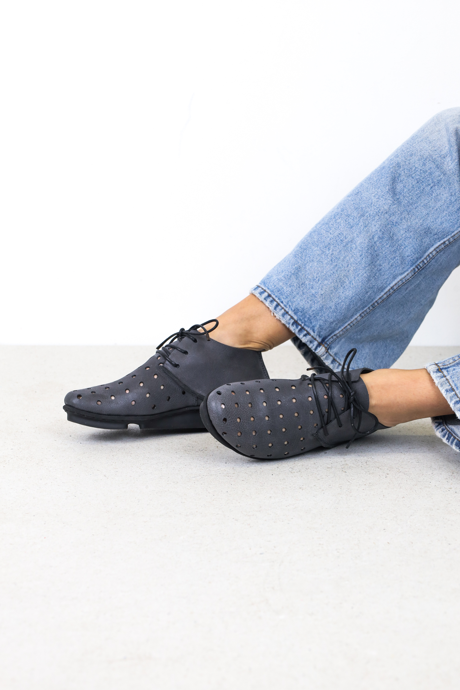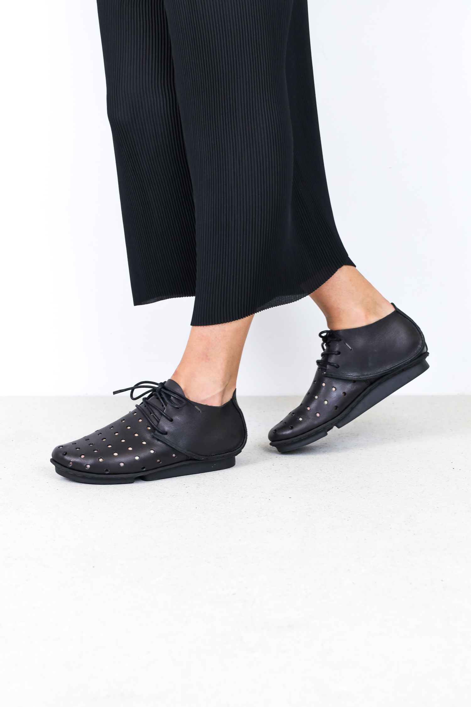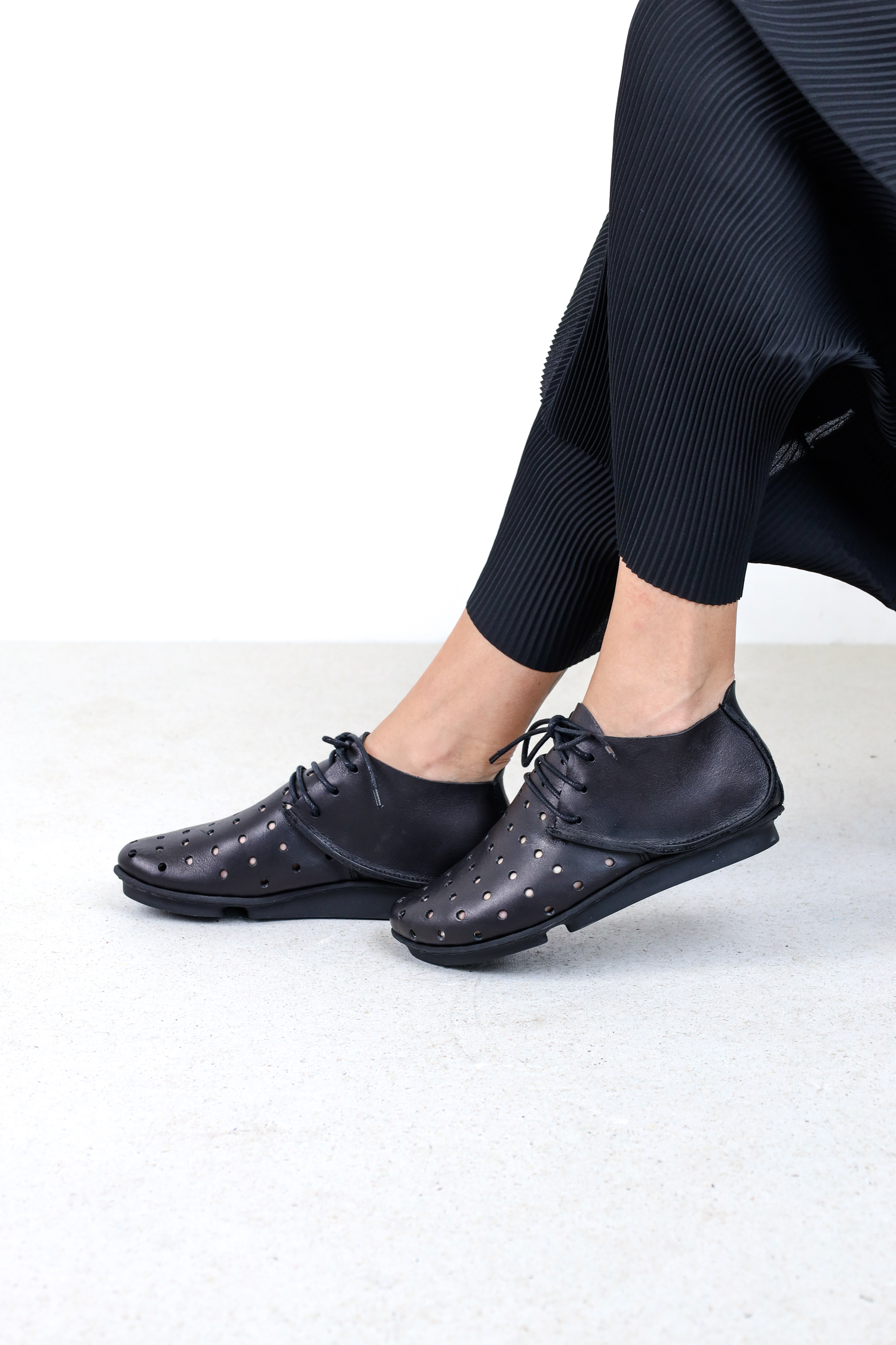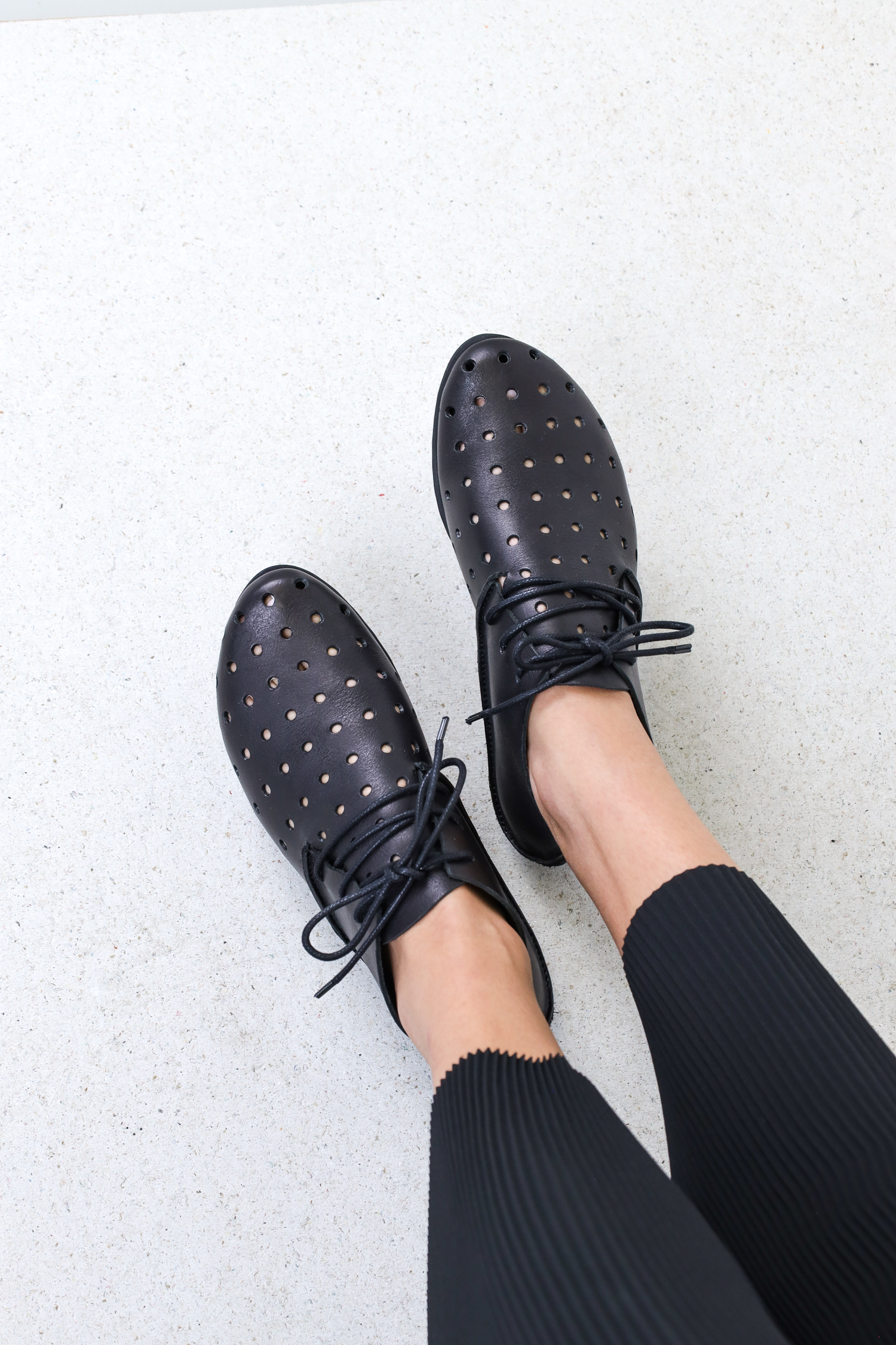 The striking holes on the instep of this casual unisex lace-up shoe provide ventilation.