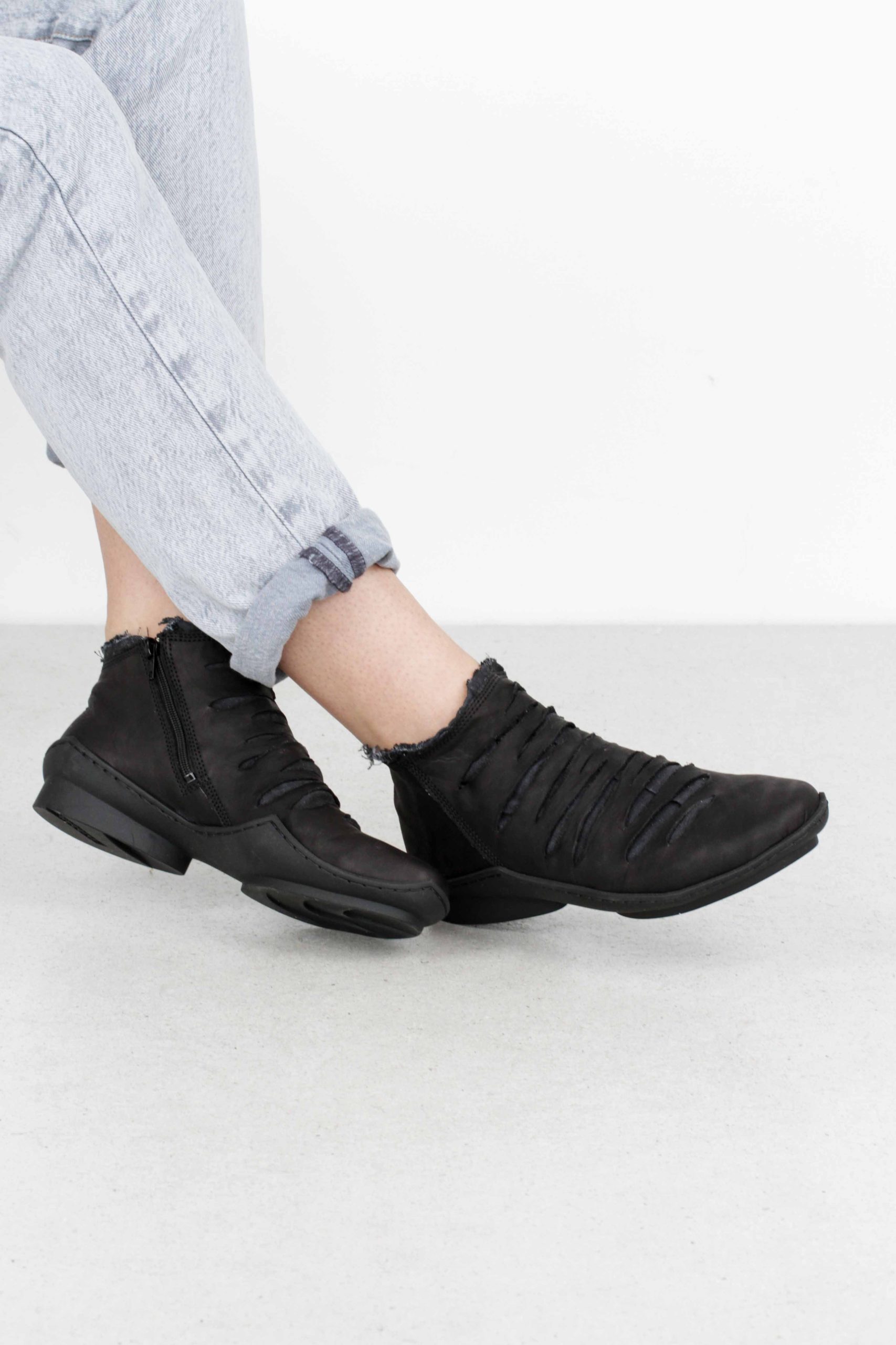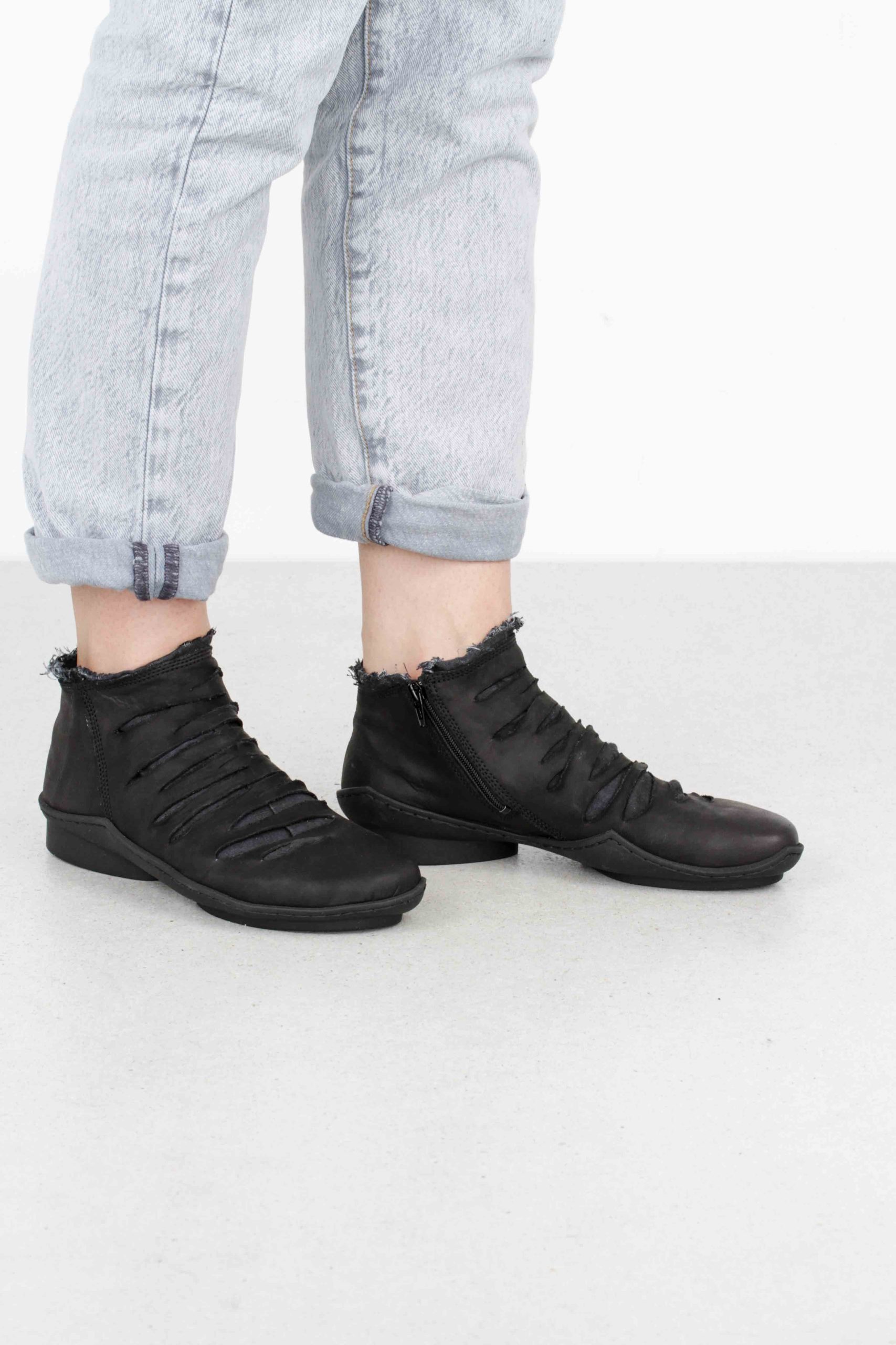 Light, summery bootie made from »Lavato« leather with interior zip. The style’s incisions ensure that the voluminous shaft worked over the instep snugly envelops the foot, while the slits create additional ventilation.