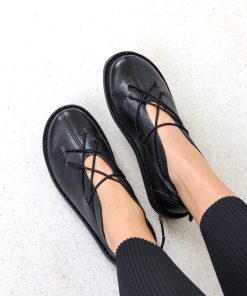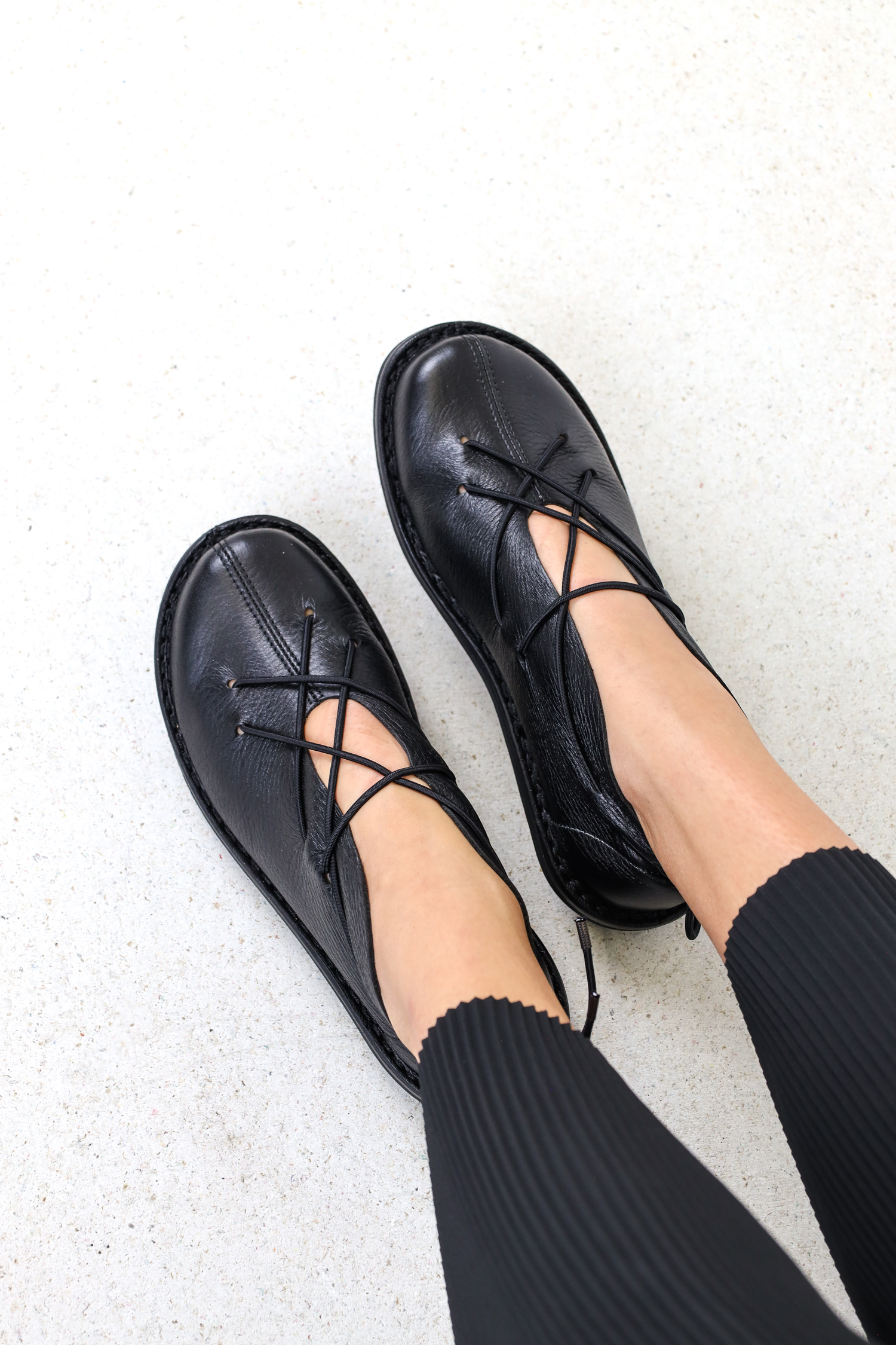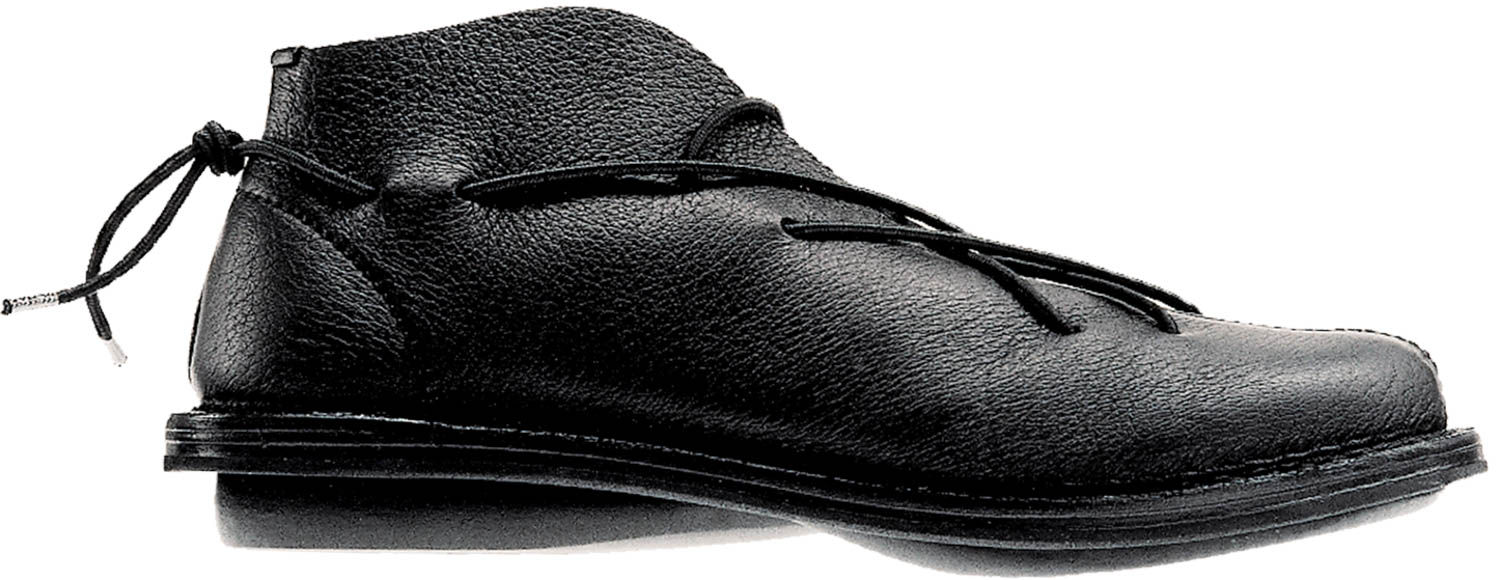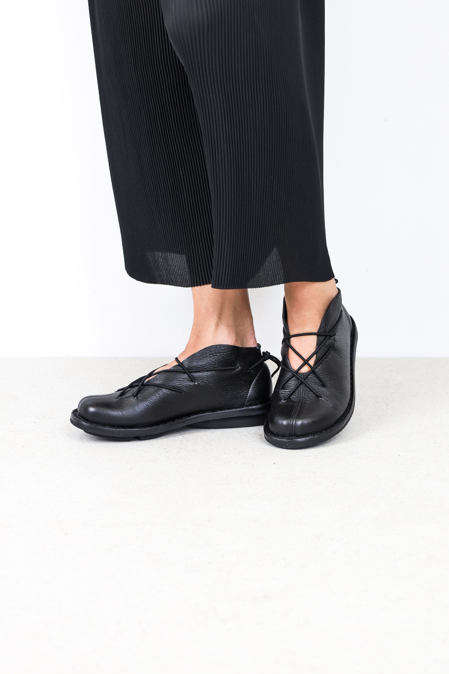 Elastic laces offer support and at the same time function as unusual decoration.