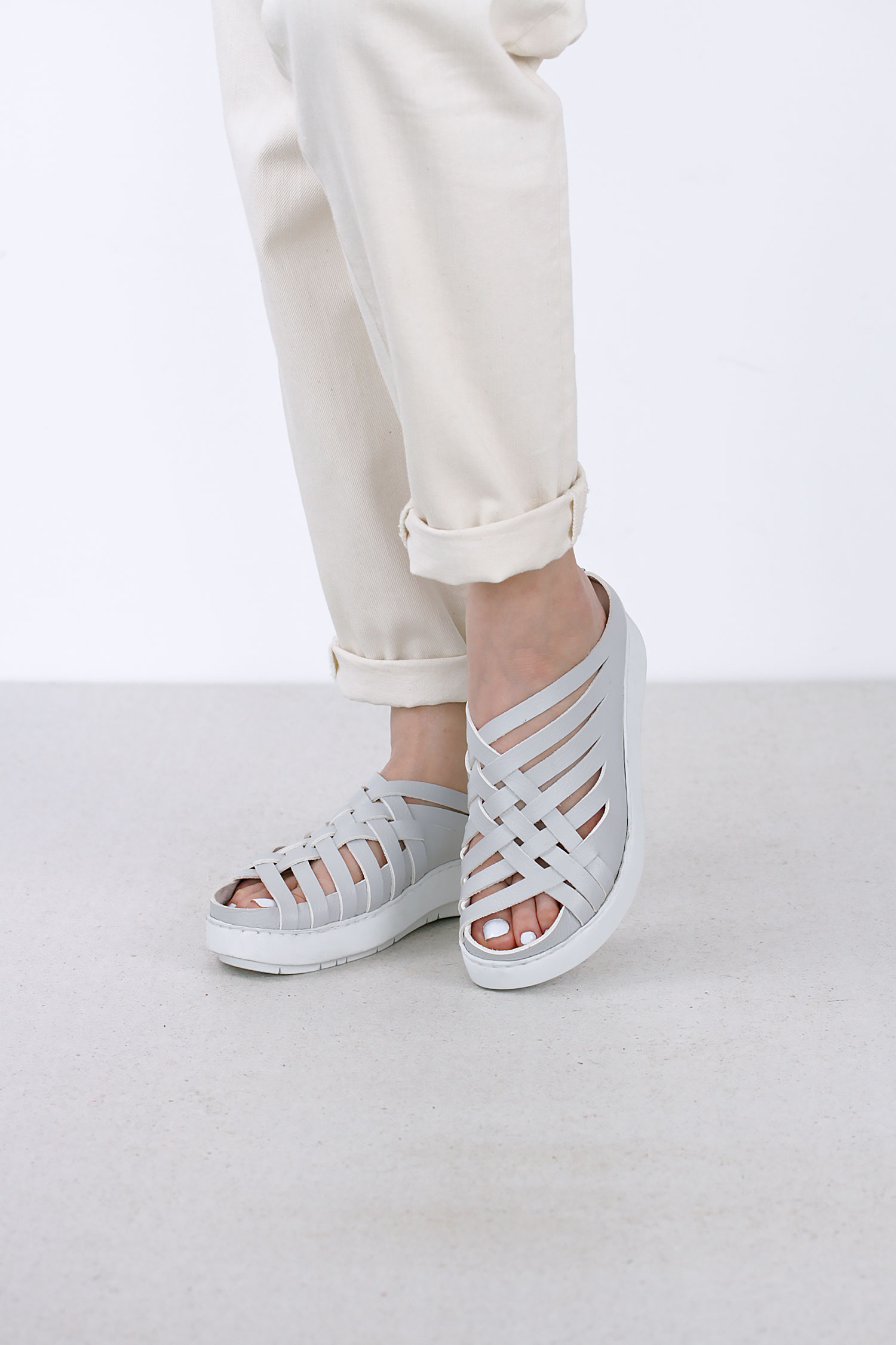 Developed from the classic leather welt of our Swan sandals, the straps of this slip-on cross asymmetrically over the instep.