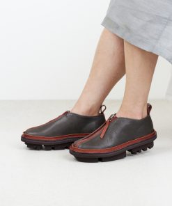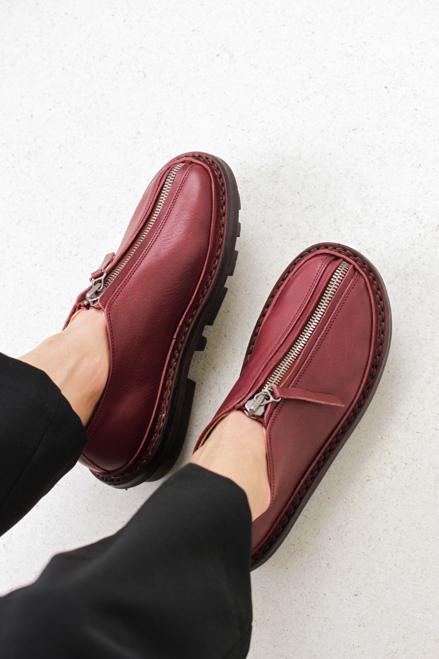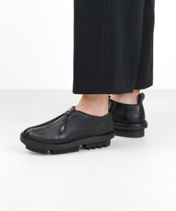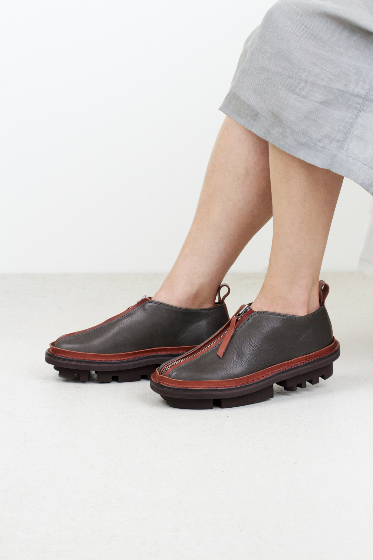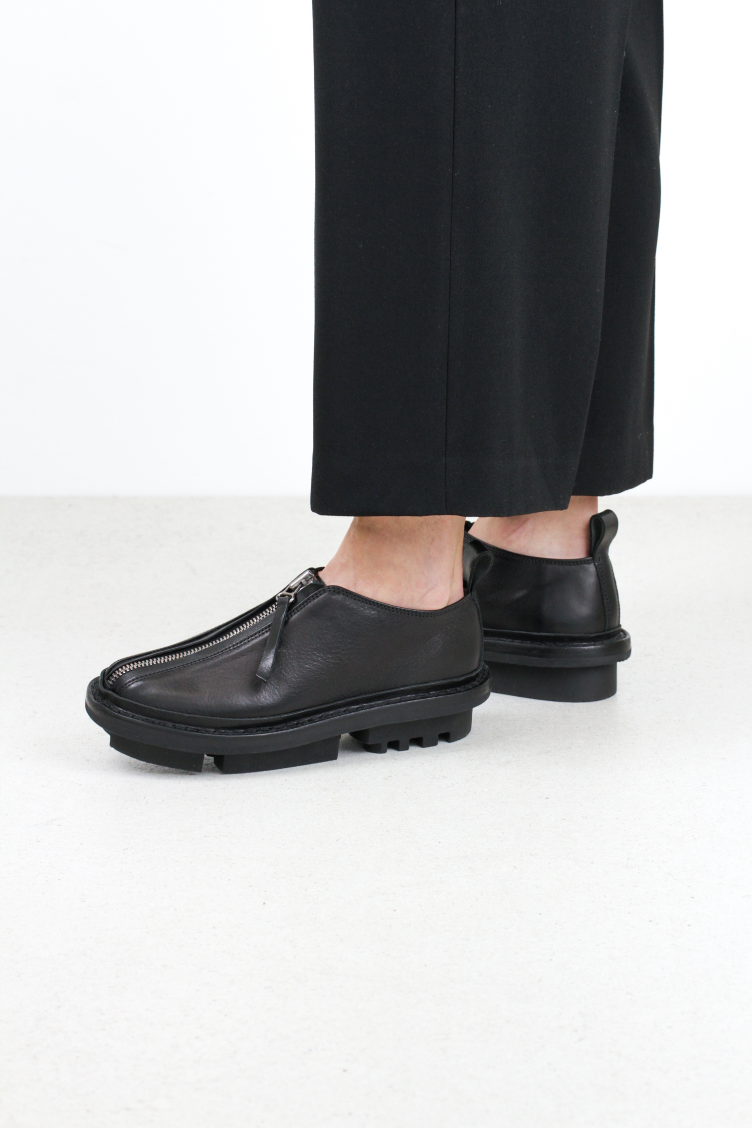 A classic everyday shoe, with a metal zipper running up the middle, that is not only decorative but also functional to wear.