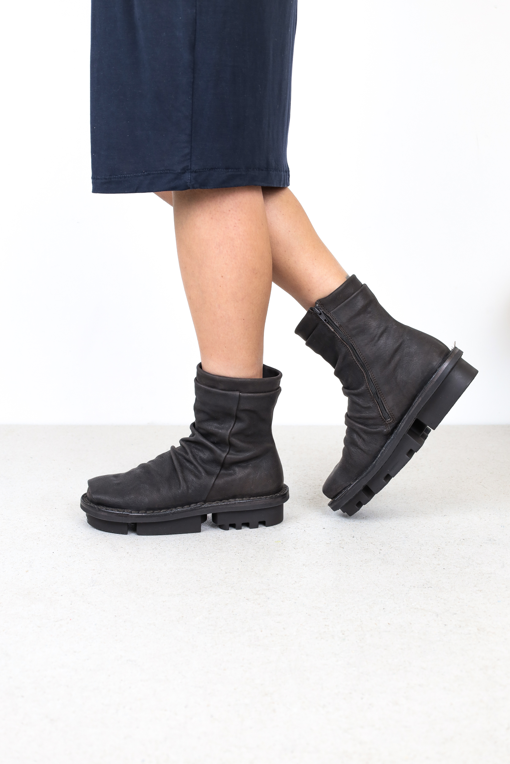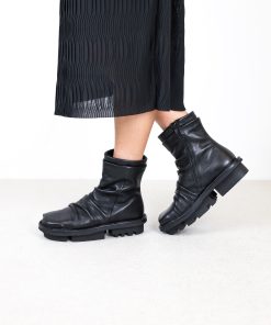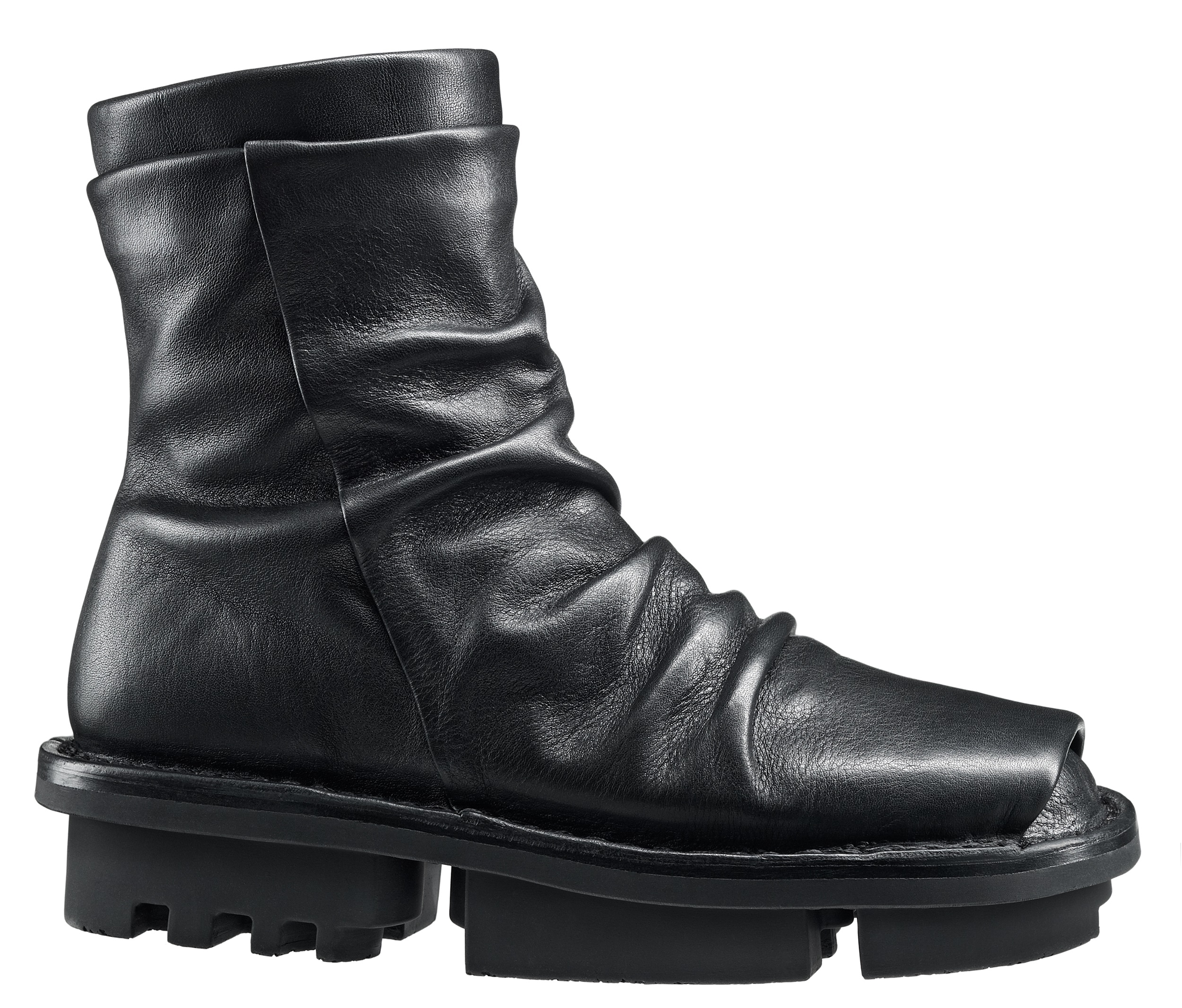 Between two simple folded edges over the toe and at the end of the shaft, the shaft lies in flowing folds.