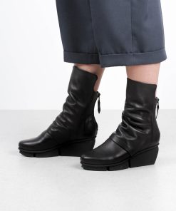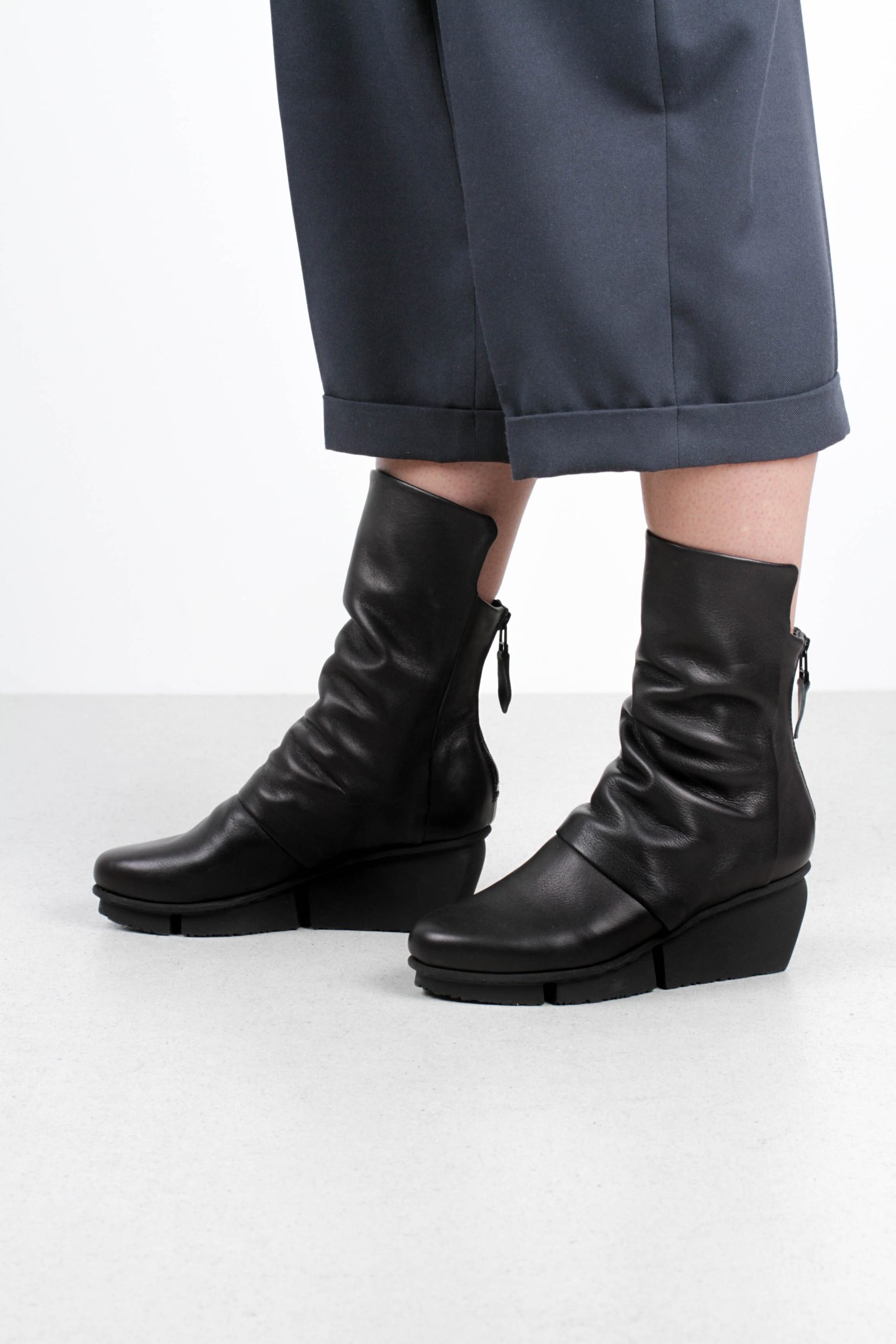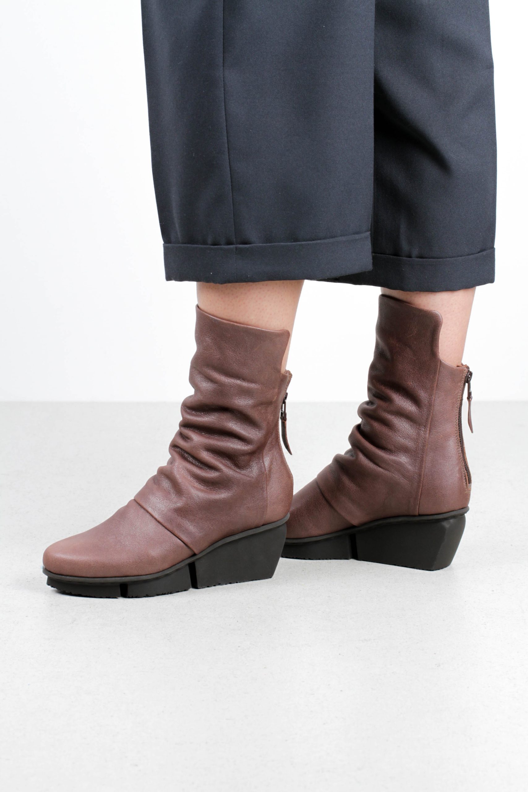 Mid-high, softly crafted boot that folds over the instep in soft pleats. The strikingly raised front part of the shaft promises a special standing. Lined.