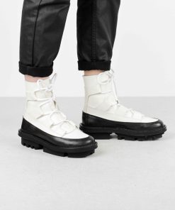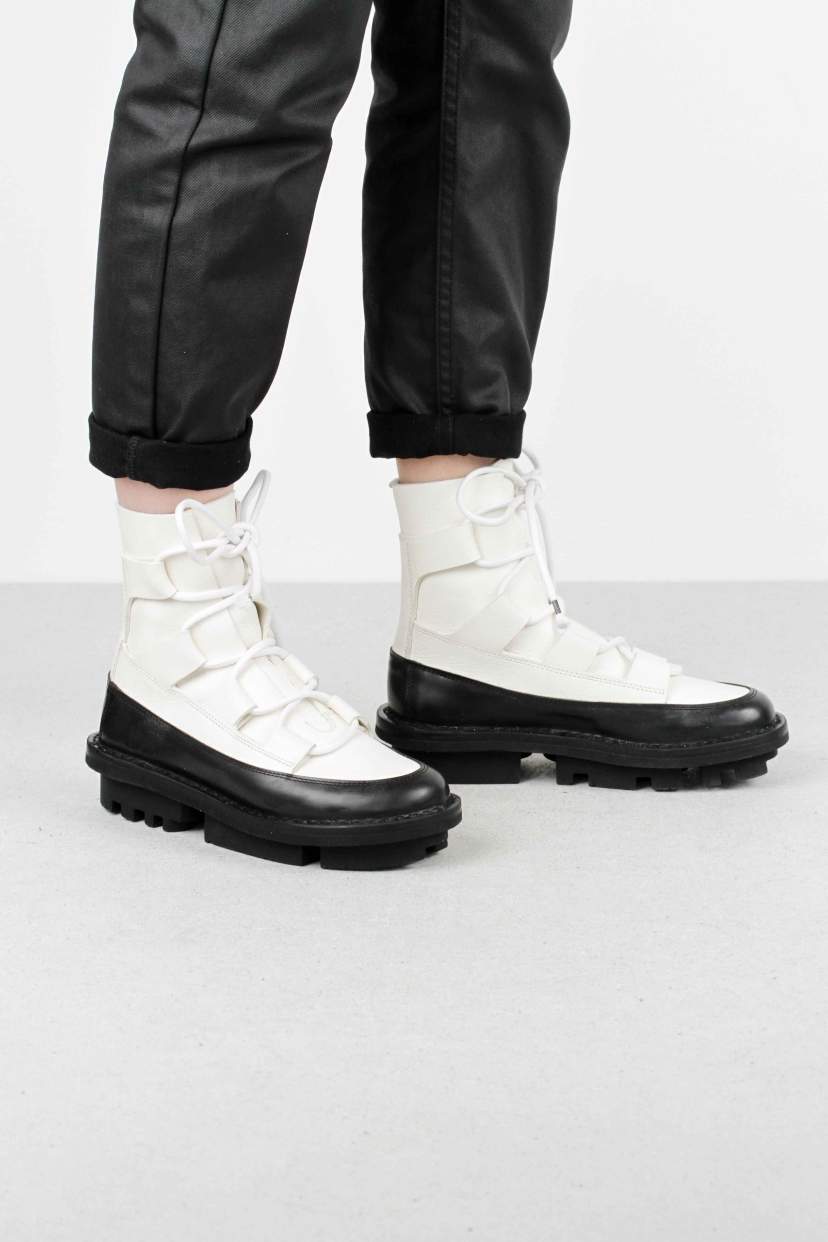 The rubber edge above the sole forms the foundation for a striking lacing design throwing wide loops.