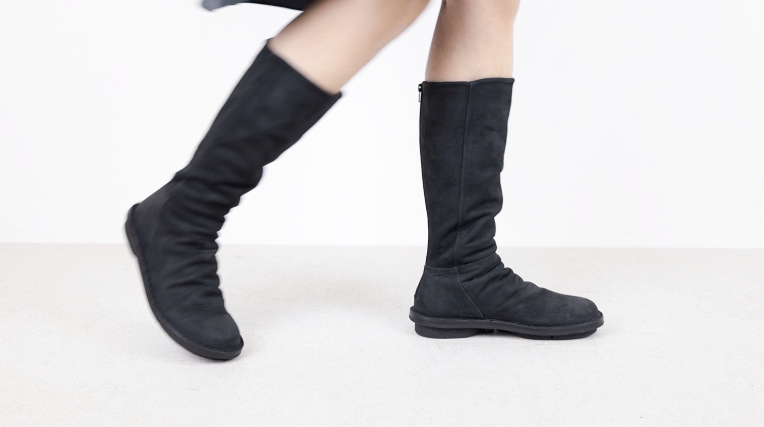 With this knee-high boot with rear zip fastener, the shaft falls in soft creases on the instep thanks to the material’s extraordinary softness.