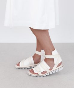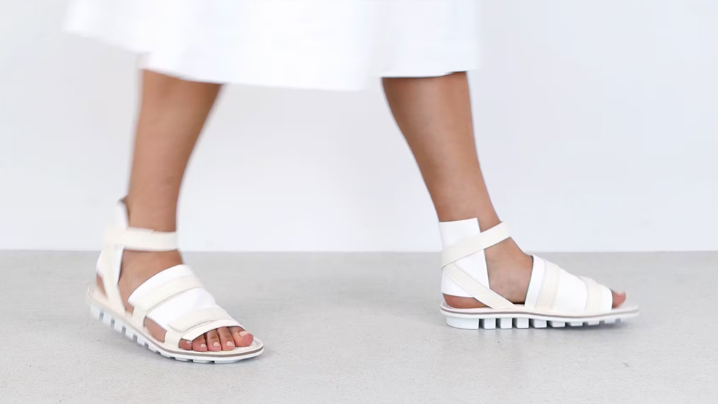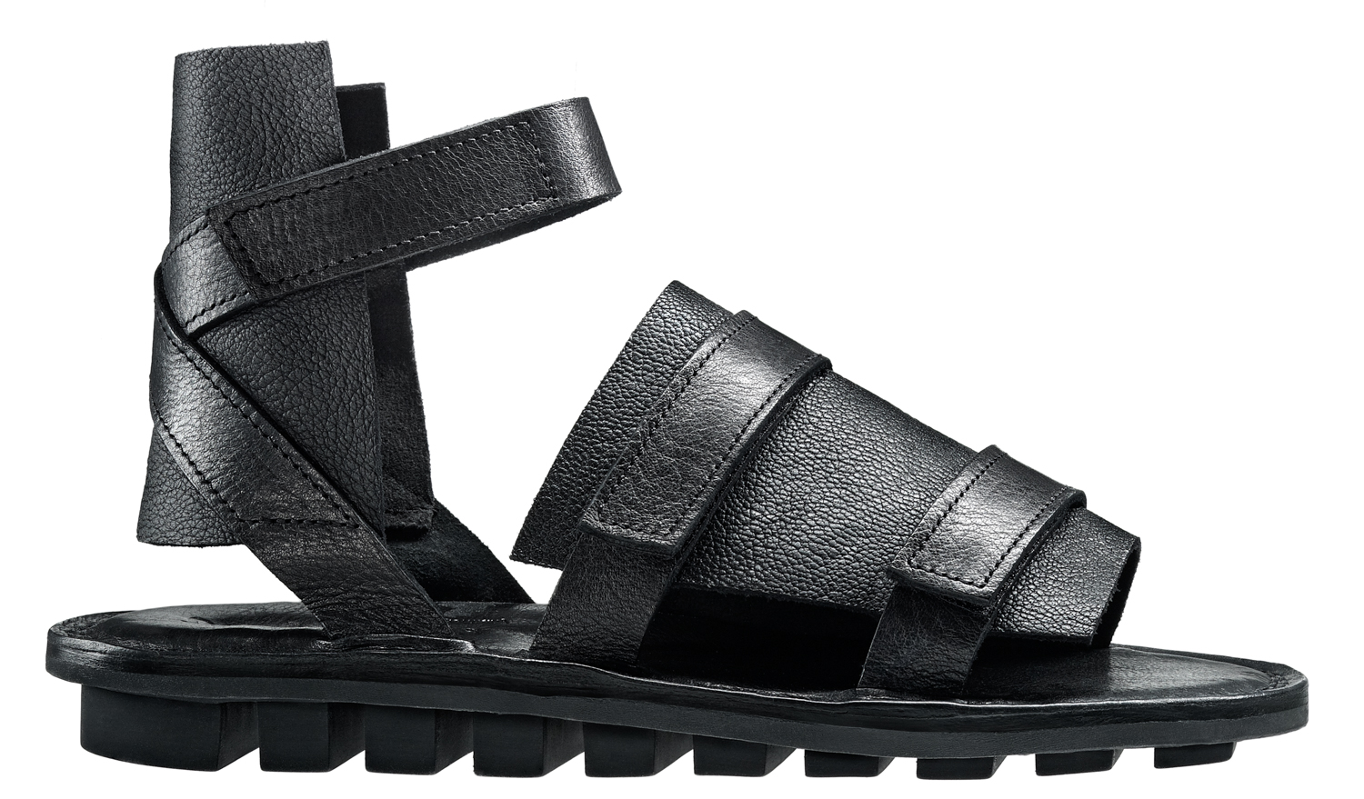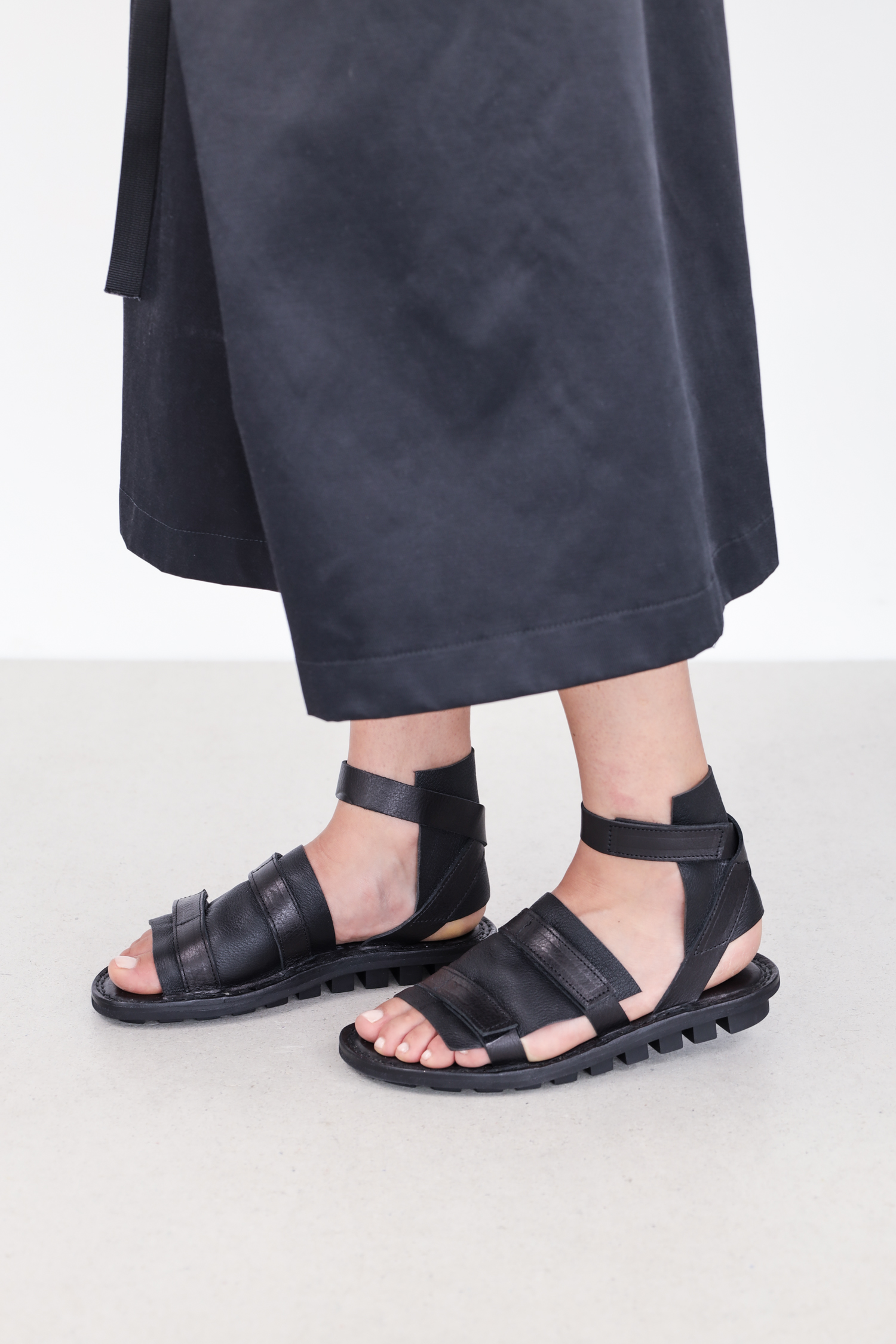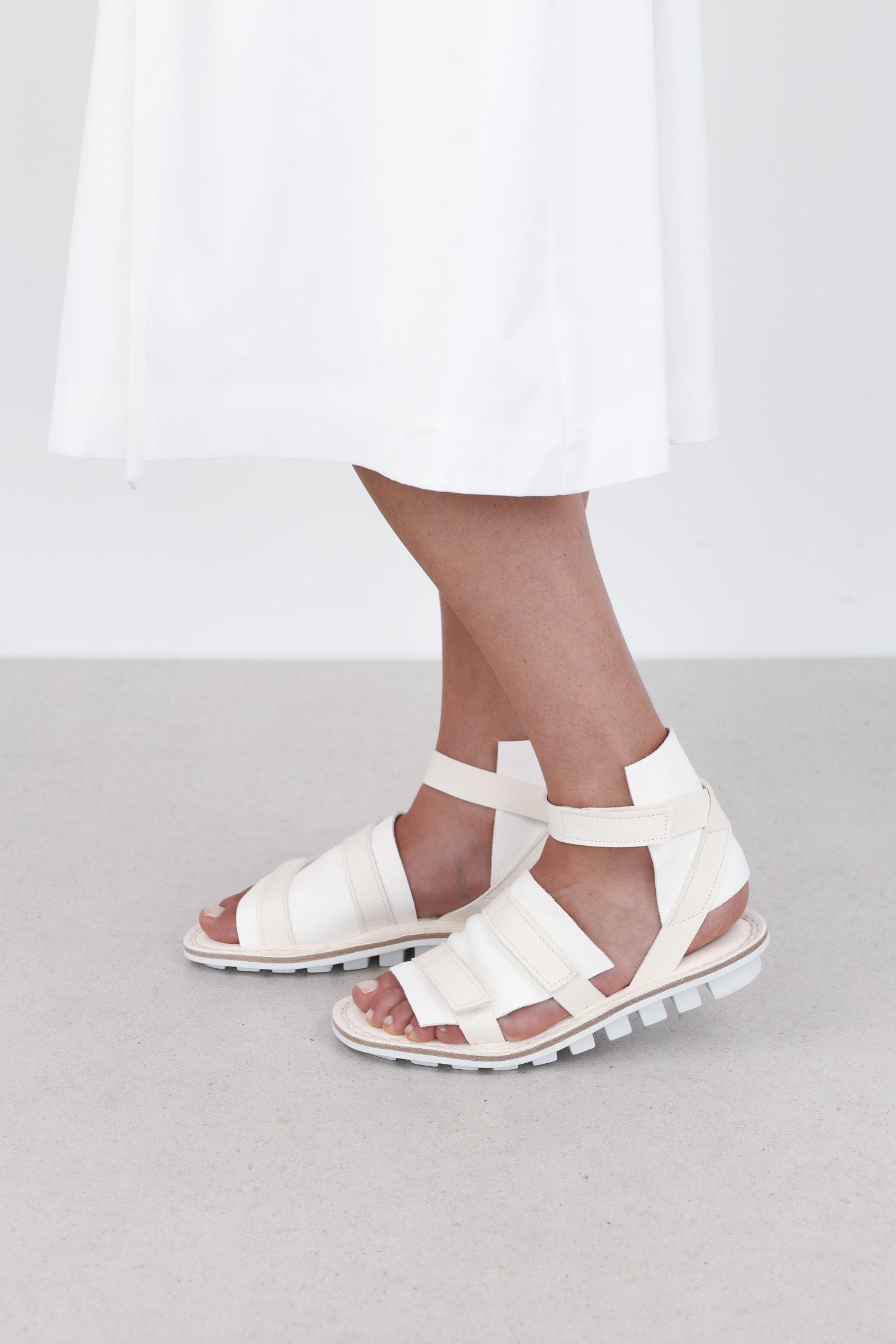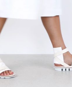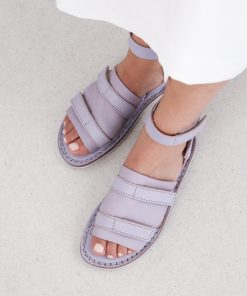 This airy sandal features easily adjustable Velcro straps going across rectangular sections of soft deer leather.