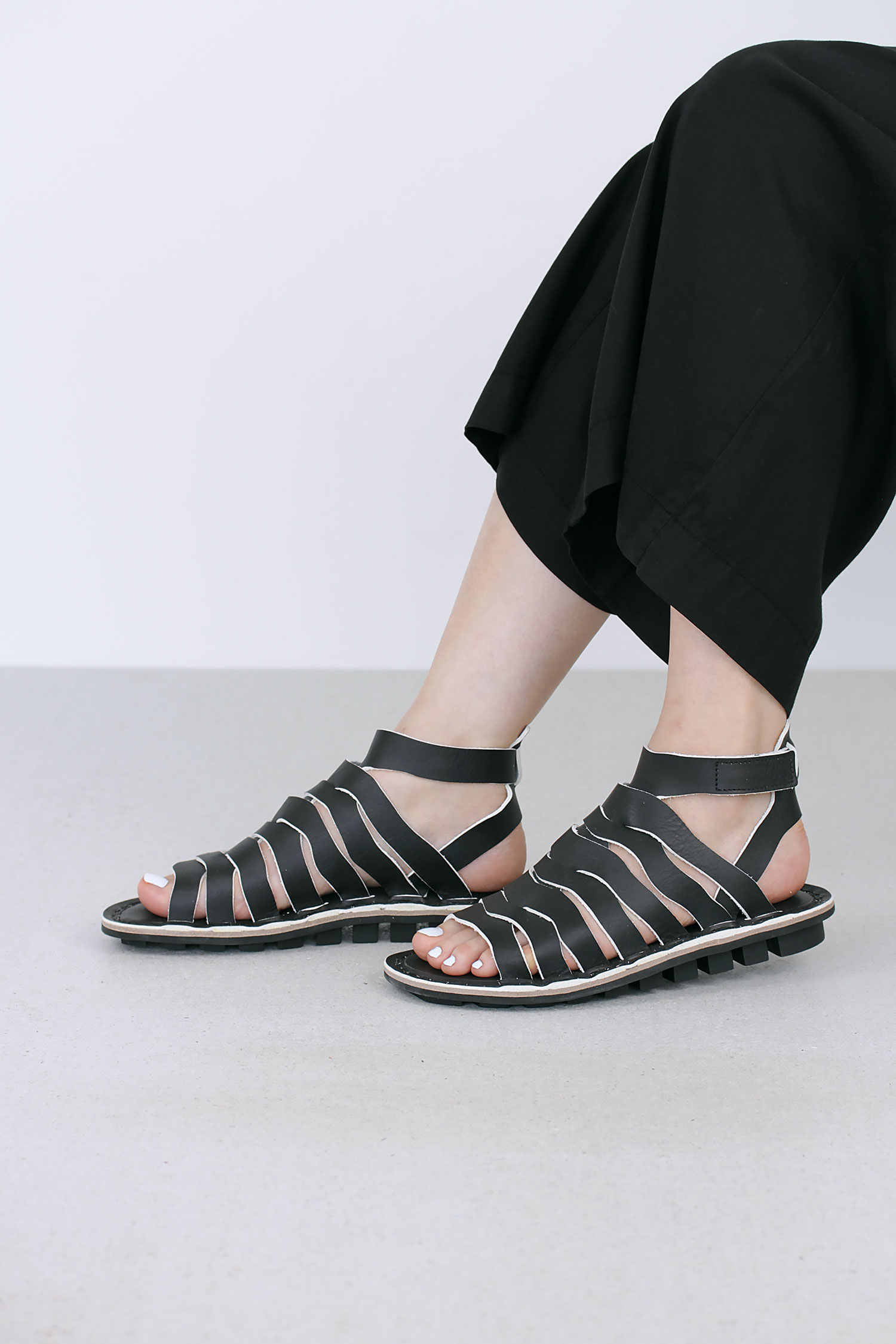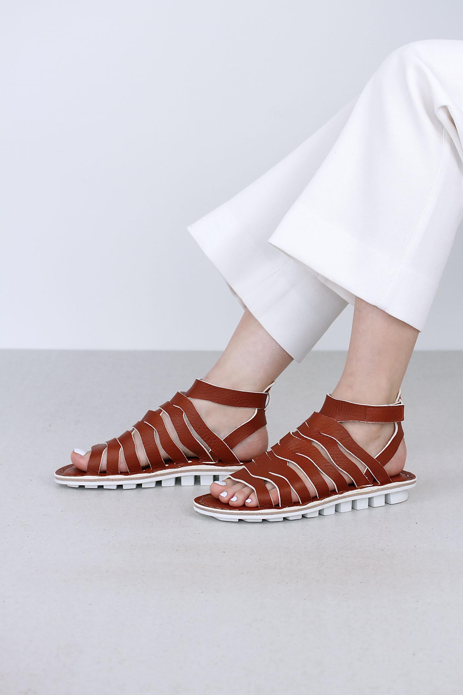 This sandal consists of wavy intertwined straps.