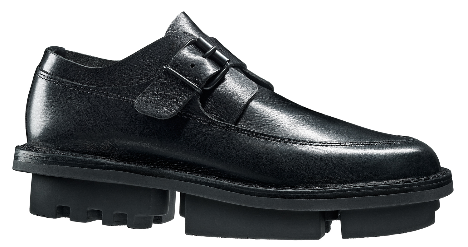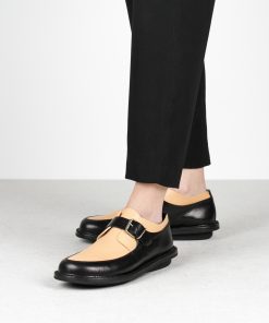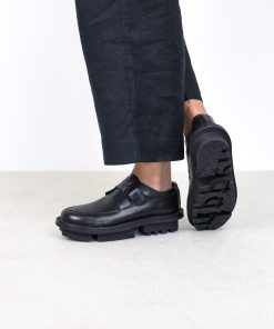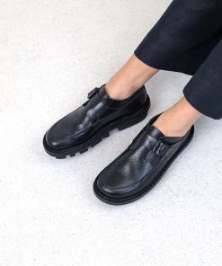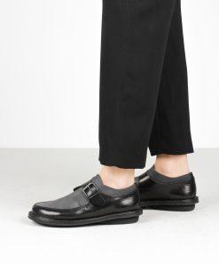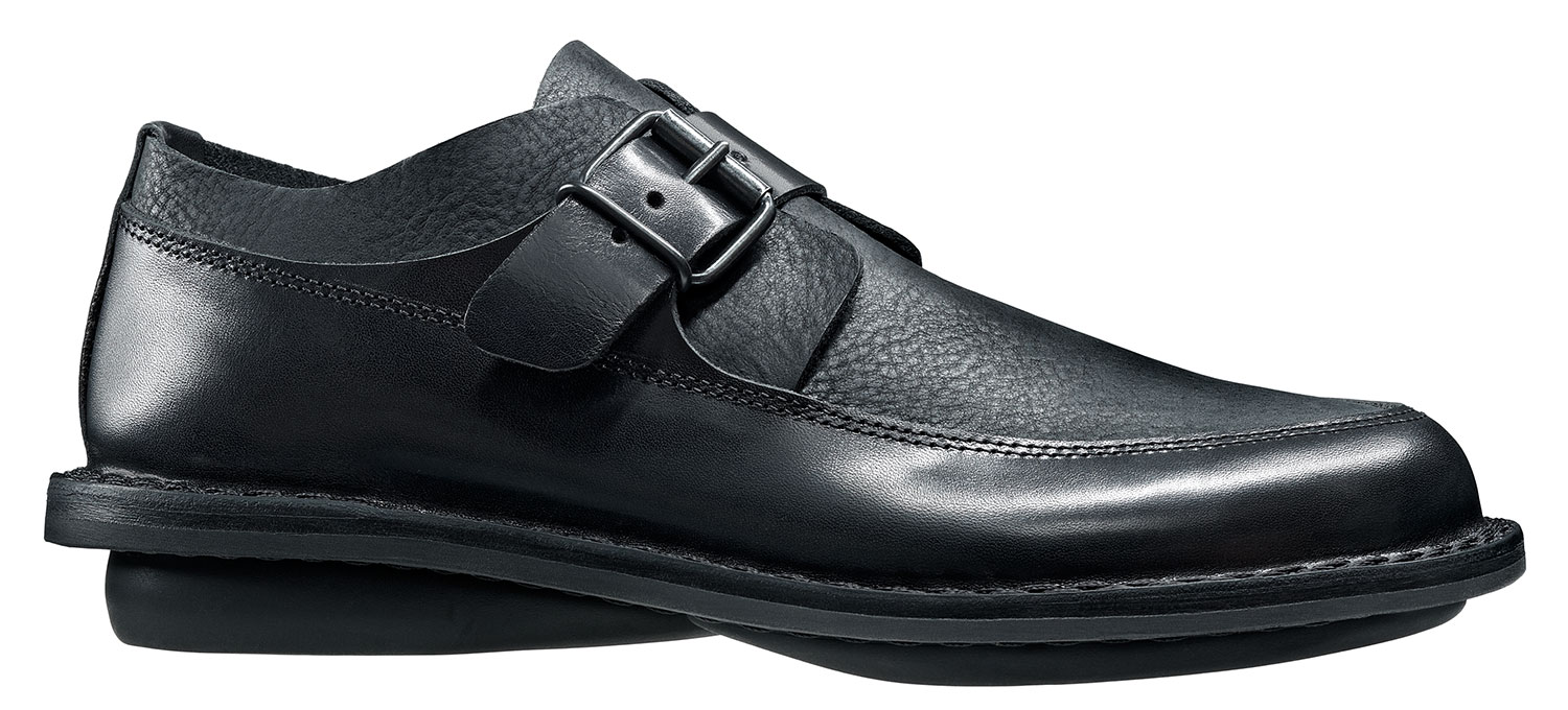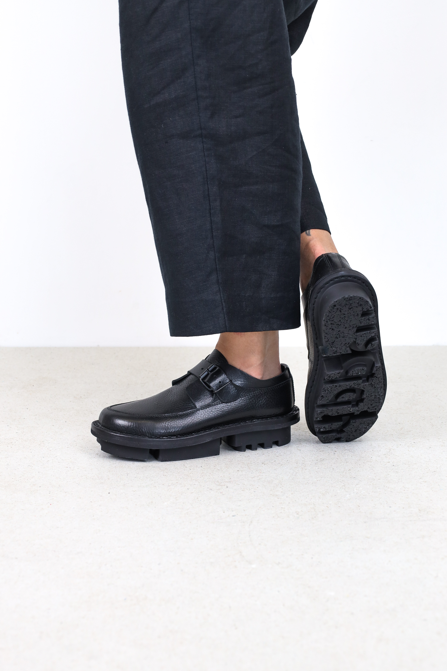 Classic unisex low-cut shoe with elegant surface and a simple buckle over the instep. Available in a range of colour combinations.