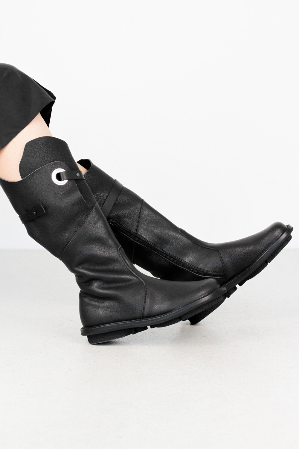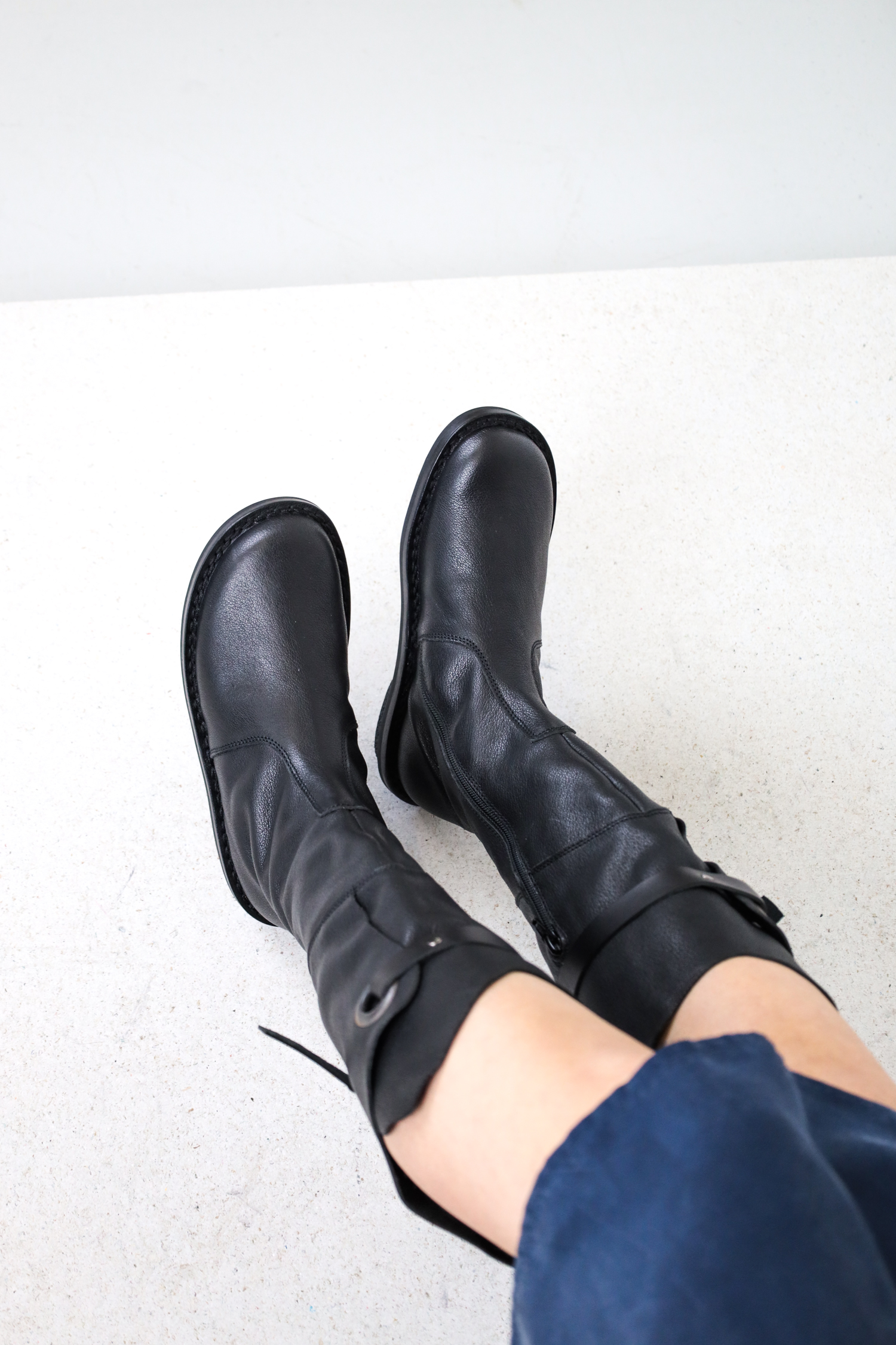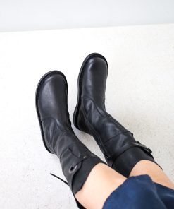 Tough winter bootie with internal zipper and leather straps on the shaft.